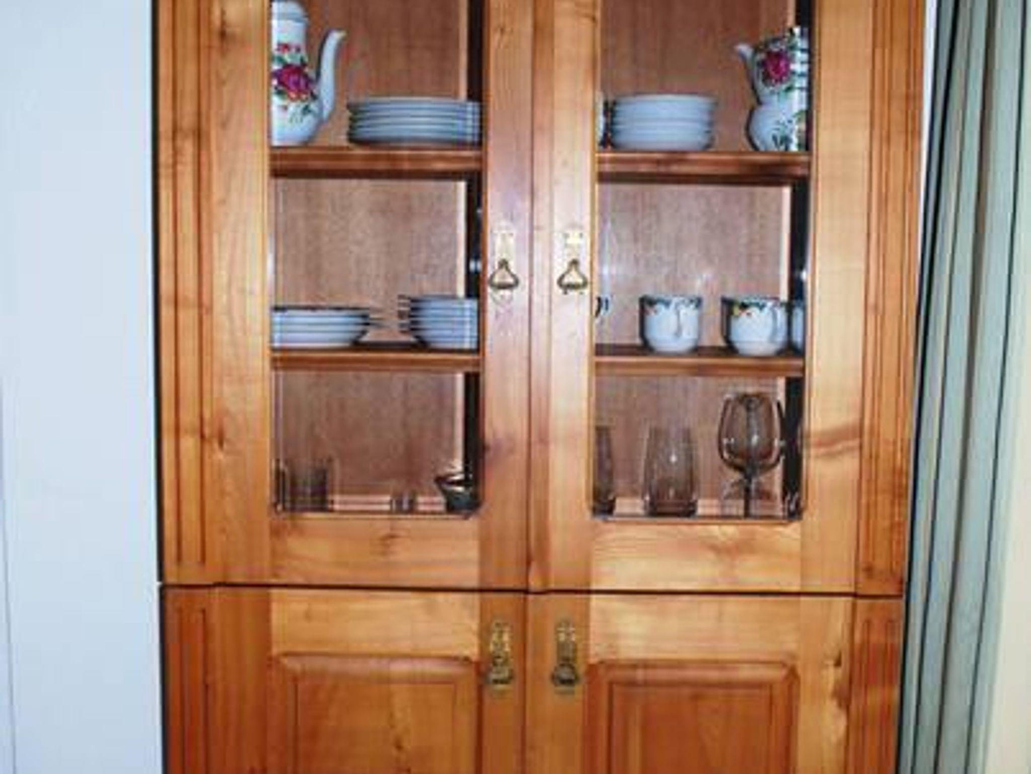 Vitrine aus massivem Kirschholz, Jugendstil-Kleiderschrank, wertvollen Teppichen, einer integrierten Küchenzeile
