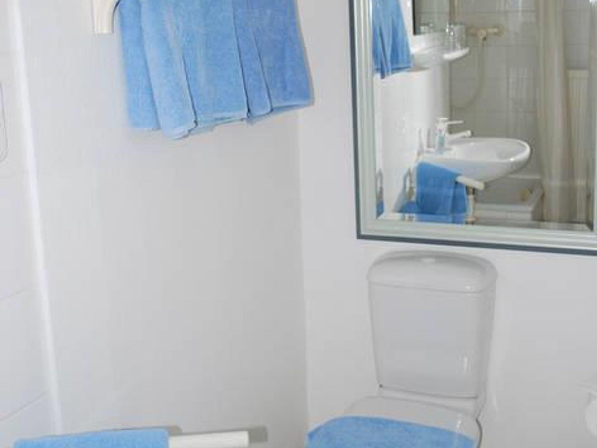 Ein Duschbad mit Föhn ist vorhanden.