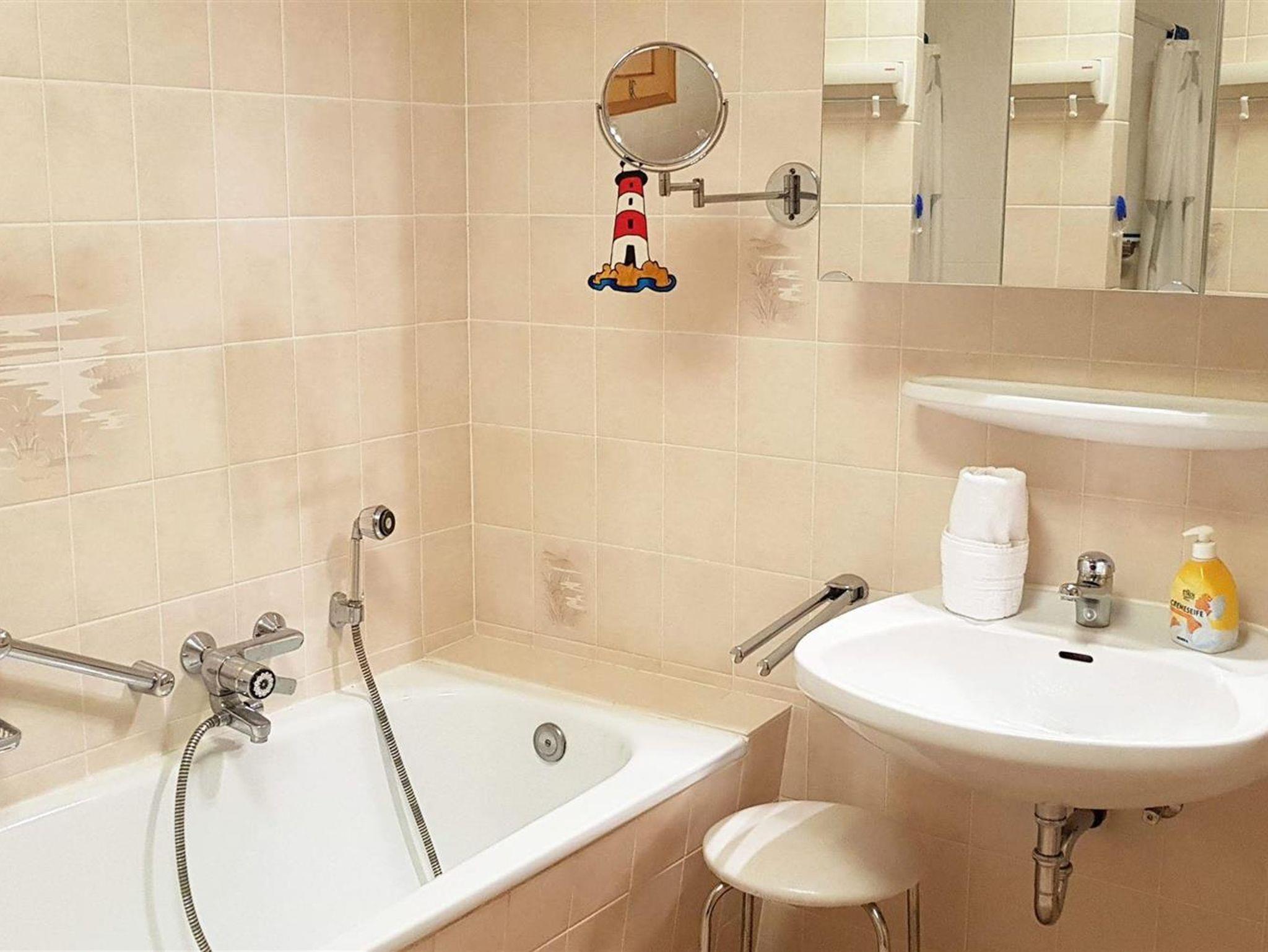 Der für Sankt Peter-Ording so typische 12 Kilometer lange Sandstrand ist zu Fuß in 20 Minuten erreichbar, bis zum Deich sind es nur 5 Minuten,