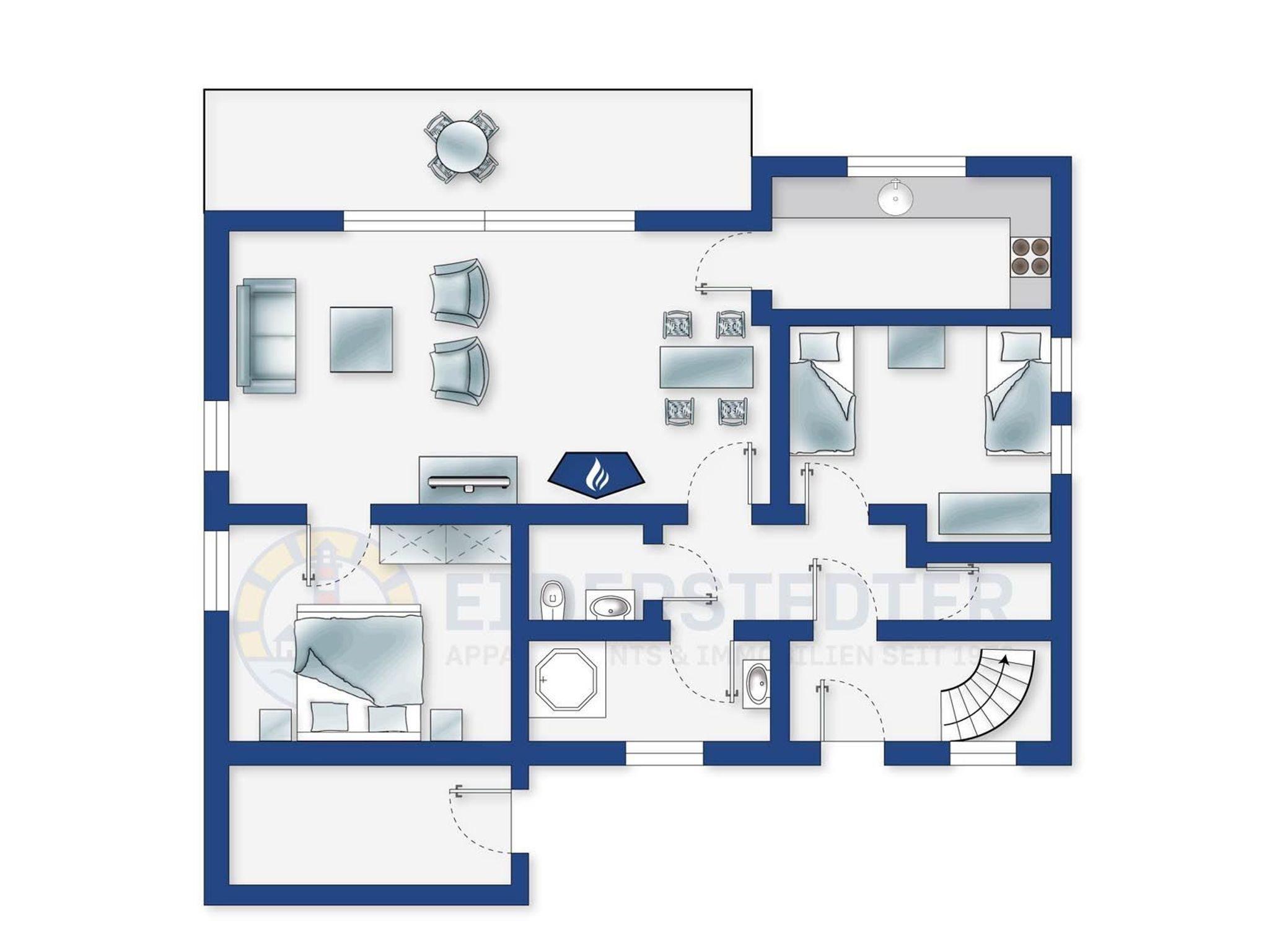 Gemütliche 3-Zimmer-Ferienwohnung Andreas im Haus Carstens mit ca. 65 m² auf 1 Ebene (EG) für bis zu 4 Personen. Ruhige Lage am Ende einer verkehrsberuhigten Straße im Ortsteil Bad in St. Peter-Ording. Mit Kaminofen und Südterrasse. Ideal für einen erholsamen Familienurlaub, idyllisch am Waldesrand.