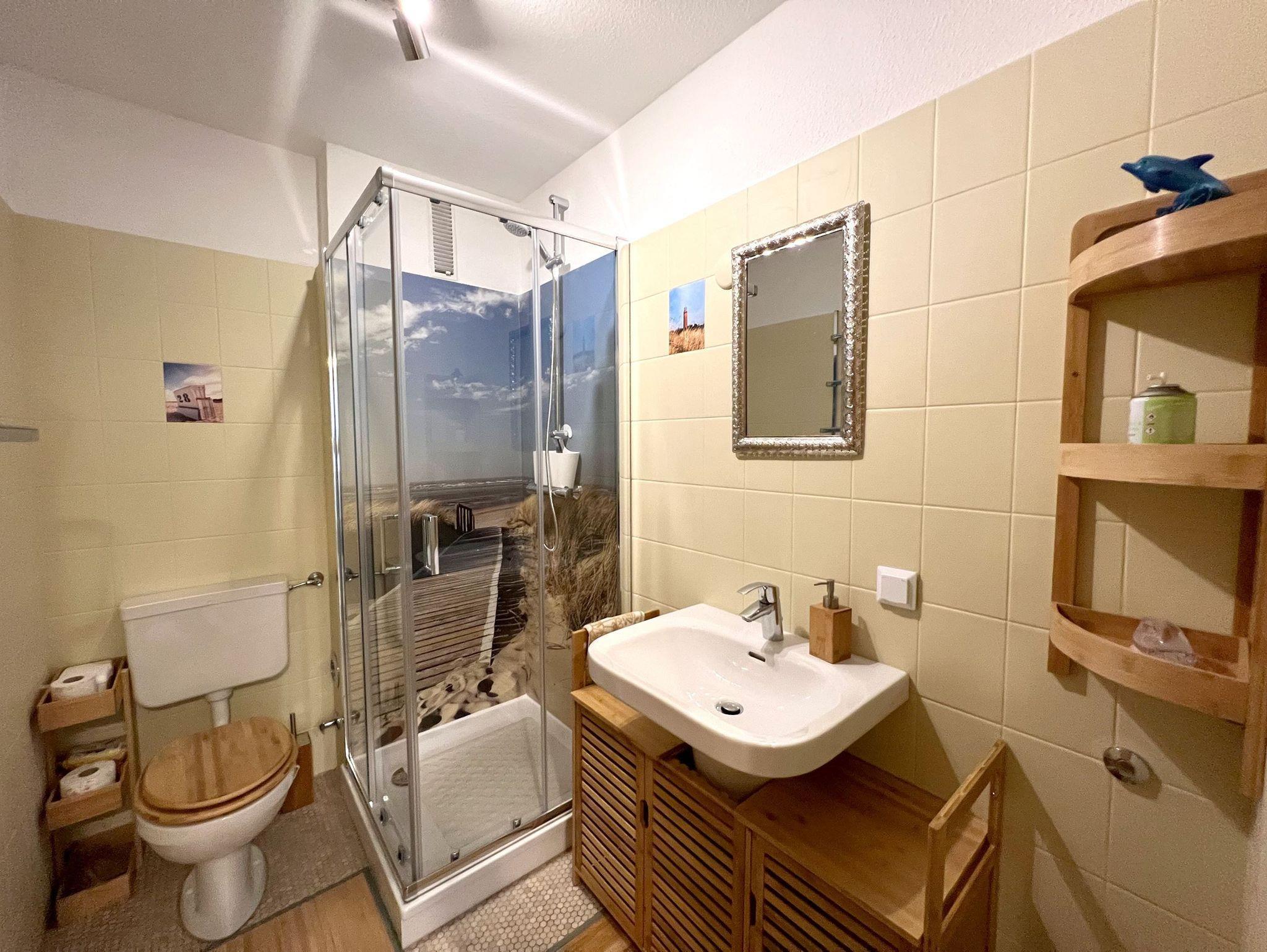Diese sehr ruhig gelegene, geschmackvoll eingerichtete Wohnung eignet sich wunderbar für Ihren Urlaub mit 2-3 Personen und einem Hund. Das kleine Schlafzimmer verfügt über zwei Einzelbetten und einen kleinen Kleiderschrank neben dem Wohnzimmerschrank. Machen Sie es sich in einer Loungegruppe auf der Terrasse in südlicher Ausrichtung gemütlich und geniessen Sie die gute Nordseeluft. Sie möchten im Freien essen, auch kein Problem, ein Gartentisch mit 4 Stühlen steht auch zur Verfügung. Genießen Sie die tolle Lage im Ortsteil Dorf. Binnen weniger Gehminuten erreichen Sie das Zentrum im heimeligen Dorf mit seinen Cafes, Restaurants, Galerien, kleinen Läden, Bäcker und einem Frische-Edeka Markt. Ein PKW-Stellplatz befindet sich auf dem Grundstück, Nr. 14-08. Es ist nur ein Haustier gestattet, welches kostenpflichtig angemeldet werden muss.