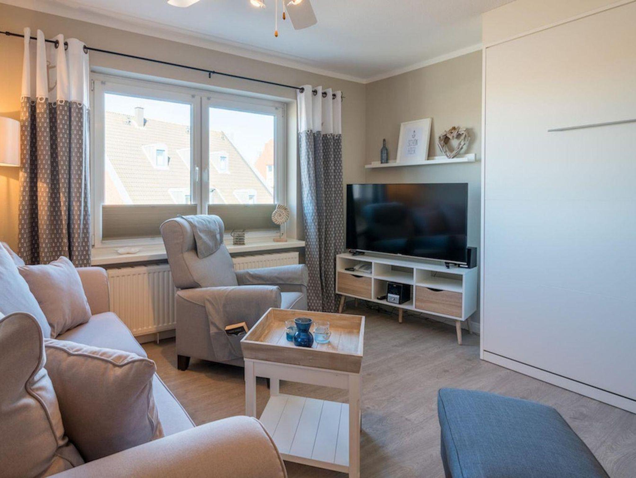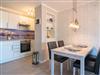 Die 49 qm Ferienwohnung besteht aus einem schönen Wohnbereich mit Couch und Couchtisch. Des weiteren steht ein Esstisch mit 4 Stühlen bereit. Die Küchenzeile der Wohnung ist ausgestattet mit einem Herd mit Ceranfeld und Backofen, Dunstabzugshaube, Geschirr, Kaffeemaschine, Kochtöpfe, Kühlschrank, Mikrowelle, Toastern und einem Wasserkocher.