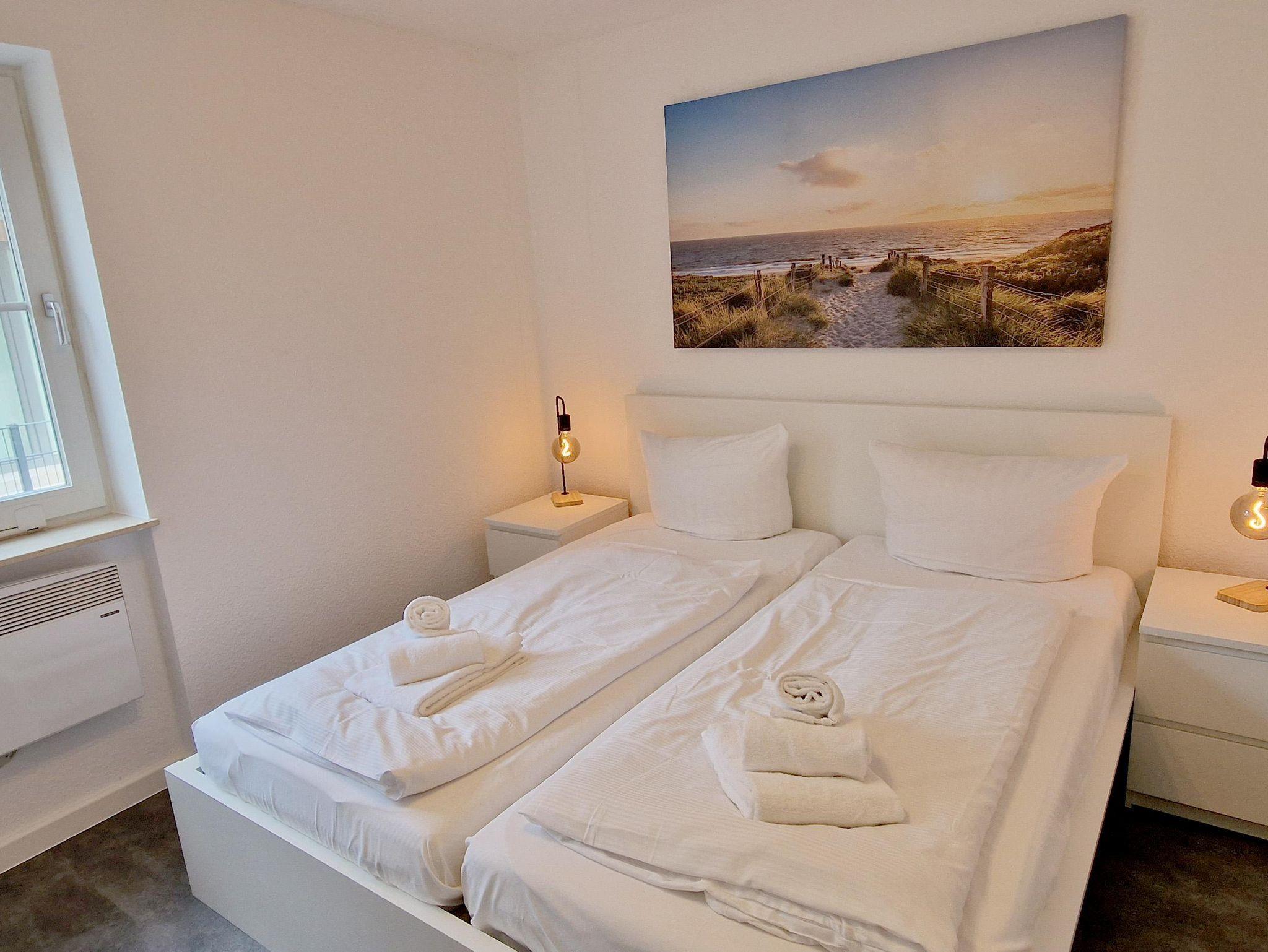 Die freundlich und unkompliziert eingerichtete 2-Zimmer-Wohnung Haus Trischen Nr. 02 bietet Urlaubs-Platz für bis zu 4 Besucher. Genießen Sie die Sonnenuntergänge auf der großen Terrasse in Westlage. In der separierten Küchennische finden Sie einen 4-Plattenherd mit Backofen. Erholsam schlafen können Sie entweder im Schrankdoppelbett im Wohnzimmer oder in den 2 Einzelbetten im Schlafzimmer.