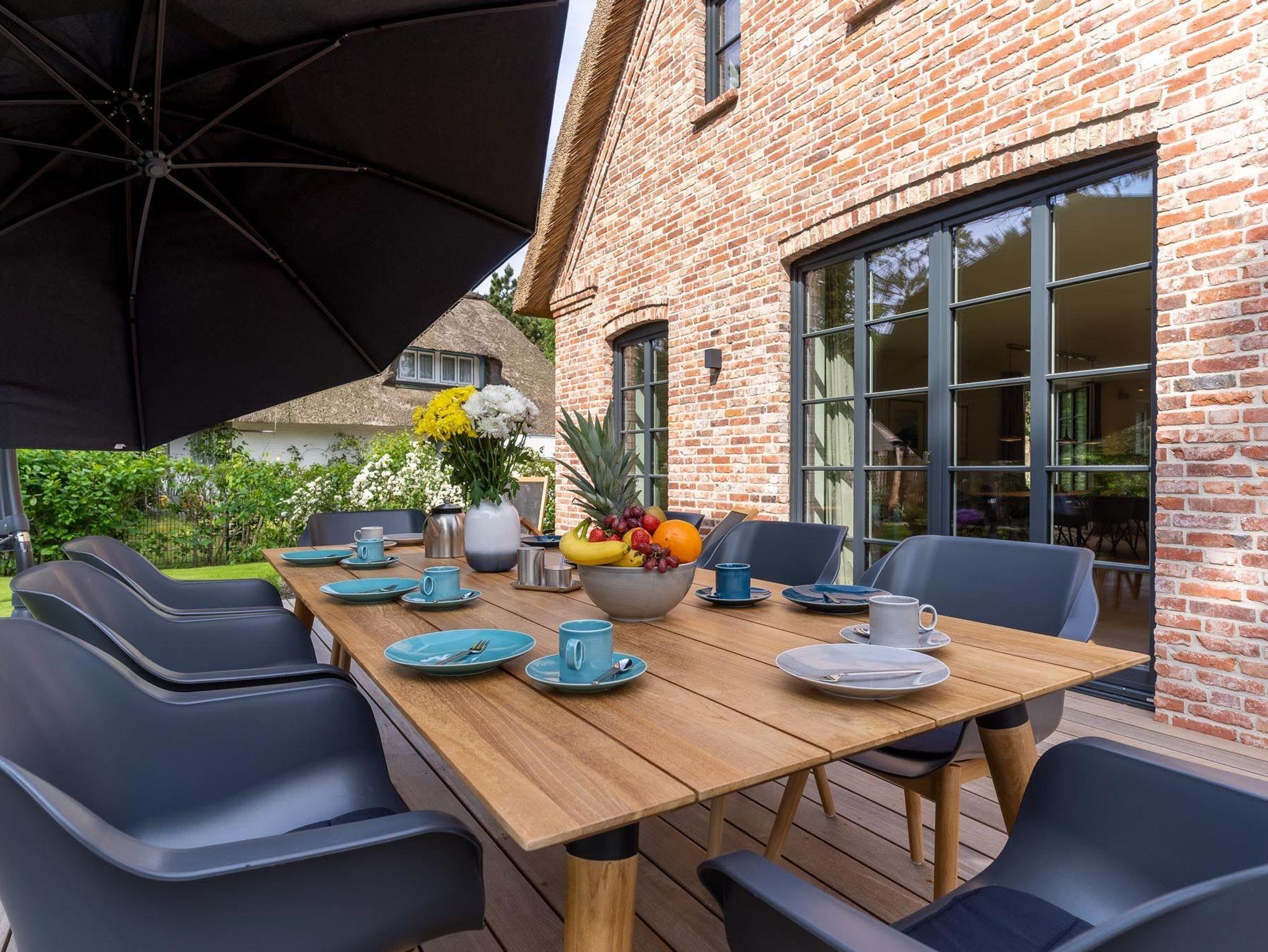 Exklusives, mit 5 DTV-Sternen ausgezeichnetes Prestigeobjekt - genießen Sie auf ca. 200 qm unvergleichlichen Luxus der Extraklasse. Das Reetdachhaus bietet mit 5 Zimmern auf 2 Ebenen, 2 Terrassen und Garten, Urlaubsräume für bis zu 8 Personen. Ein Juwel mitten im Stillen Dorf, eine von St. Peter-Ording´s Topadressen, qualitativ hochwertig und luxuriös ausgestattet, lädt das großzügige ?Hideaway Hoher Himmel?, der Name leitet sich aus dem sensationellen Eingangsbereich ab, zum Wohlfühlen ein, ob am offenen, von drei Seiten sichtbaren Kamin im Wohnzimmer, beim Entspannen im Spa, beim geselligen Beisammensein in dem 60 qm großen Wohn-Essbereich oder beim Kochen in der modernen, top ausgestatteten Küche. Umgeben von Musik über das Sonos Soundsystem, Streamingdienste, Smart TV, Fußbodenheizung erleben Sie einen unvergesslichen Urlaub. Im Außenbereich runden 2 große Terrassen und der liebevoll angelegte Garten den Zauber dieses Ferientraumes ab.