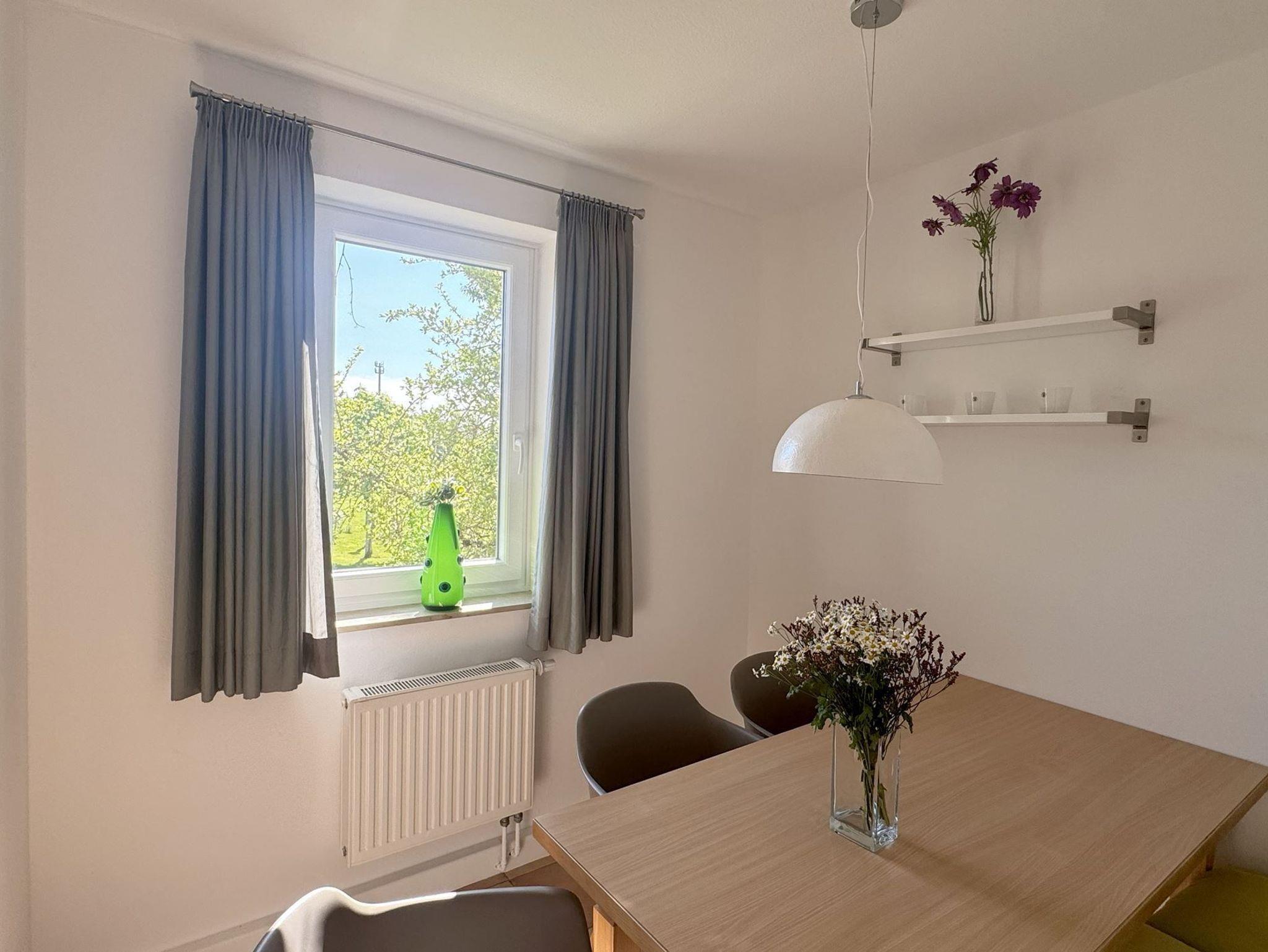 Die Wohnung 13 in der Anlage Luna I liegt im Obergeschoss des Hauses. Sie ist 75qm groß und geeignet für bis zu 5 Personen. Der Eingangsbereich ist mit einer Garderobe ausgestattet. Es gibt zwei Schlafzimmer mit Doppelbetten (180x200cm, getrennte Matratzen). In einem der beiden Schlafzimmer befindet sich zusätzlich ein Einzelbett für eine fünfte Person. Des weiteren sind zwei Duschbäder mit Waschbecken und WC vorhanden. Der Wohn-Essbereich verfügt über eine offene, umfangreich ausgestattete Küche. Im Wohn-Esszimmer befinden sich ein Esstisch sowie etwas separiert davon ein großzügiger, gemütlicher Sitzbereich mit Fernseher. WLAN steht kostenlos zur Verfügung. Die Einrichtung ist modern und hochwertig. Die gesamte Wohnung ist durch ihren Bodenbelag mit Designerparkett und Fliesen geeignet für Allergiker. Vom Wohnbereich aus gelangen Sie auf den Balkon der Wohnung, der mit Gartenmöbeln ausgestattet ist und einen Blick in die wunderschöne Grünanlage mit Obstwiese bietet.
