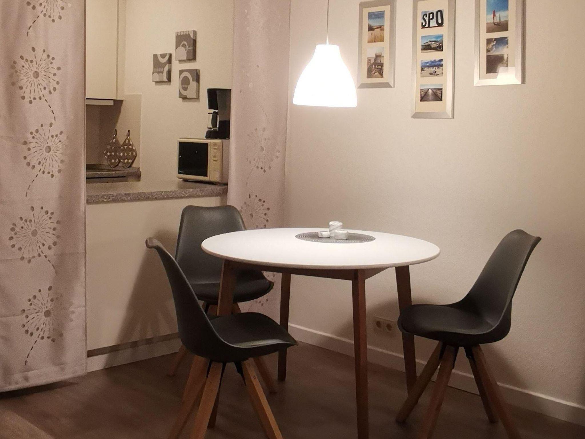Das gemütliche, sehr gut und in 2023 neu ausgestattete Appartement Nr.8 befindet sich in der 1.Etage des Hauses Residenz, Im Bad 22. Es liegt sehr zentral im Kurzentrum, Ortsteil St. Peter-Bad, nahe Kurpromenade mit Strandübergang, Seebrücke u. Dünentherme und eignet sich somit auch ideal für Kuraufenthalte. Es besteht aus einem Wohn-Schlafraum mit Sitzgruppe, Essecke u. Schrankdoppelbett (1,60x2,00) auf einem mit Designplanken belegten Fußboden, einer offenen 2-zeiligen Küche (diese enthält u.a. E-Herd, Dunstabzug, Backofen, Kühlschrank, Mikrowelle, Kaffeemaschine, Wasserkocher, Toaster, Mixer, Bügeleisen) u. einem Bad mit Wanne u. Duschvorrichtung, WC, Föhn vorhanden. Südloggia mit Blick zum Garten. Für Unterhaltung ist gesorgt durch Spiele, Bücher, W-Lan, Kabel-TV, Radio, CD-Player u. Gästeinfo-Ordner mit vielen Tipps. Ein PKW-Stellplatz Nr. 65 ist für Sie im abschließbaren Teil des Parkhauses, Im Bad 4 reserviert. Fahrradabstellflächen befinden sich im Innenhofgarten u. im Keller. Münz-Waschmaschine u. Münz-Trockner im Keller sind gegen Gebühr nutzbar. Einen EDEKA-Markt finden Sie im Nachbargebäude.Nichtraucherobjekt, keine Haustiere erlaubt.