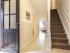 Flur mit Spiegel, Garderobe und Schuhablage im Eingangsbereich. Abstellraum mit Staubsauger, Gartenmöbeln und kostenlosem Kinderreisebett.