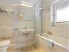 Badezimmer (Wannenbad) mit Badewanne mit Dusch-Handstück, WC, Tageslicht und Föhn.