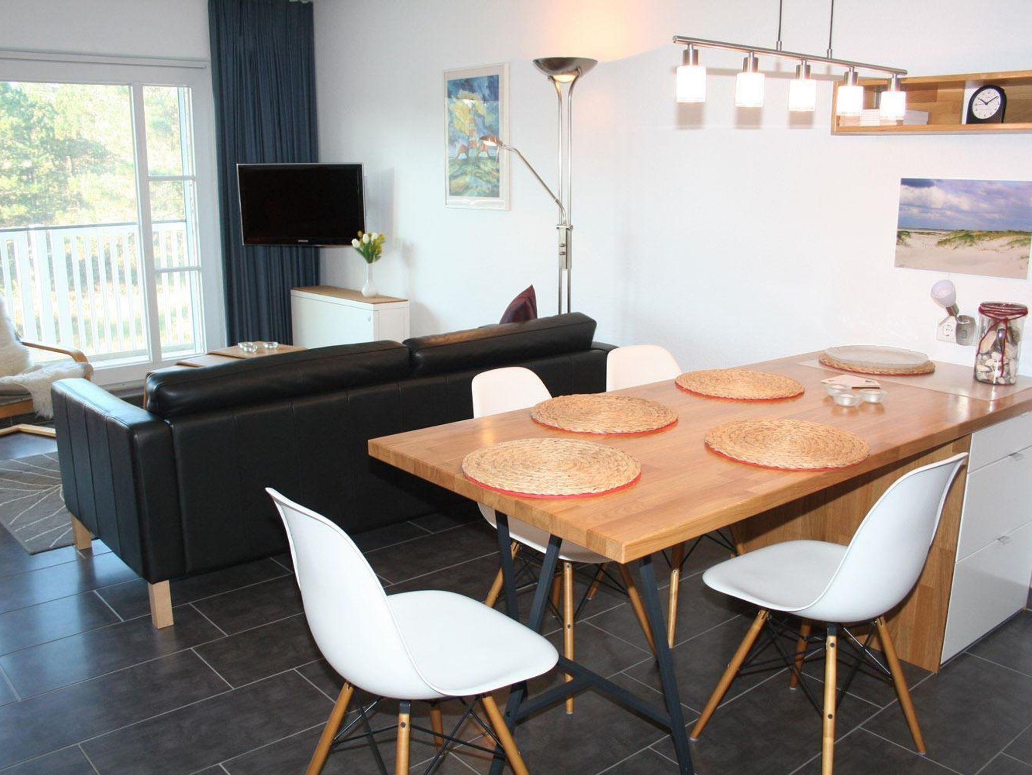 In wenigen Minuten am Strand2 Personen (ggf. mit Kind) können sich in der modern ausgestatteten 2-Zimmerwohnung Haus Brandung Nr. 05 so richtig wohlfühlen. Im 1. OG des Hauses erwartet Sie auf 47 qm ein wohnlich und freundlich eingerichtetes Appartement mit Schlafzimmer, Badezimmer und großzügigem Wohnzimmer mit integrierter Küche, mit Ceranfeld, Backofen, Kühlschrank und Spülmaschine, sowie einem großen Eßtisch. Der große und teilüberdachte Balkon mit Blick auf den direkt angrenzenden Kurwald wird Ihnen gefallen. Die Wohnung ist vollständig gefliest und daher besonders allergikerfreundlich, WLAN steht kostenlos zur Verfügung.