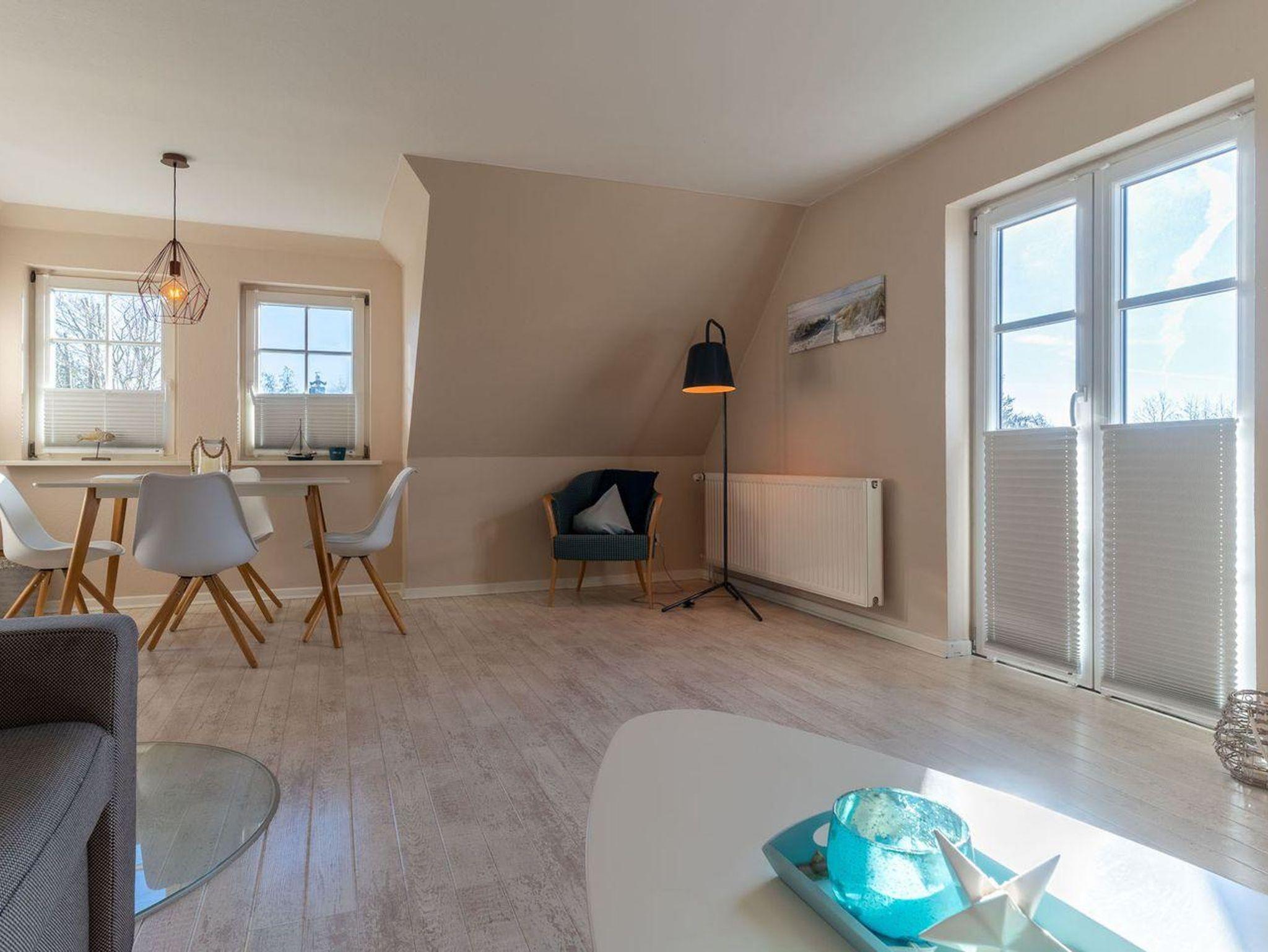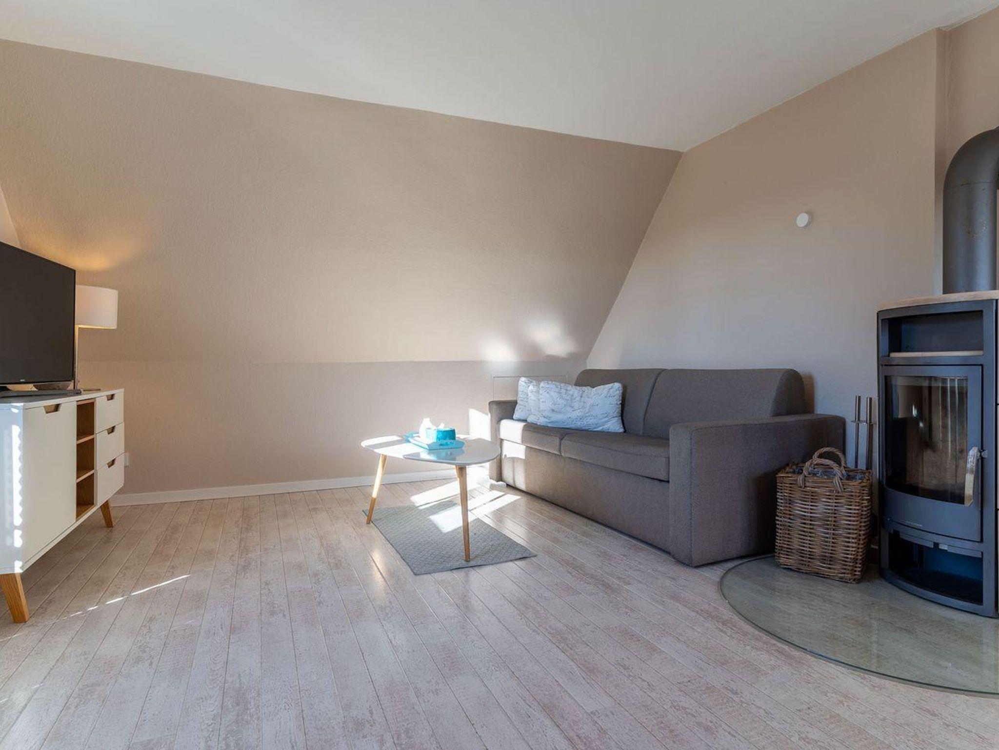 Sie gelangen durch Ihren Haupteingang direkt in den Eingangsbereich mit einer modernen Küche. Die Küche ist mit hochwertigen Geräten voll ausgestattet. Über eine schöne Holztreppe gelangen Sie in das Obergeschoss. Das großzügige Wohnzimmer mit Kamin sorgt für entspannte Urlaubstage. Hier befindet sich ein gemütliches Schlafsofa. Im Obergeschoss ist ebenso ein Doppelschlafzimmer mit großen Einbauschrank und ein Duschbad. Genießen Sie die schönste Zeit im Jahr - Ihren Urlaub, im gemütlichen Kleinod - direkt an den Dünen.
