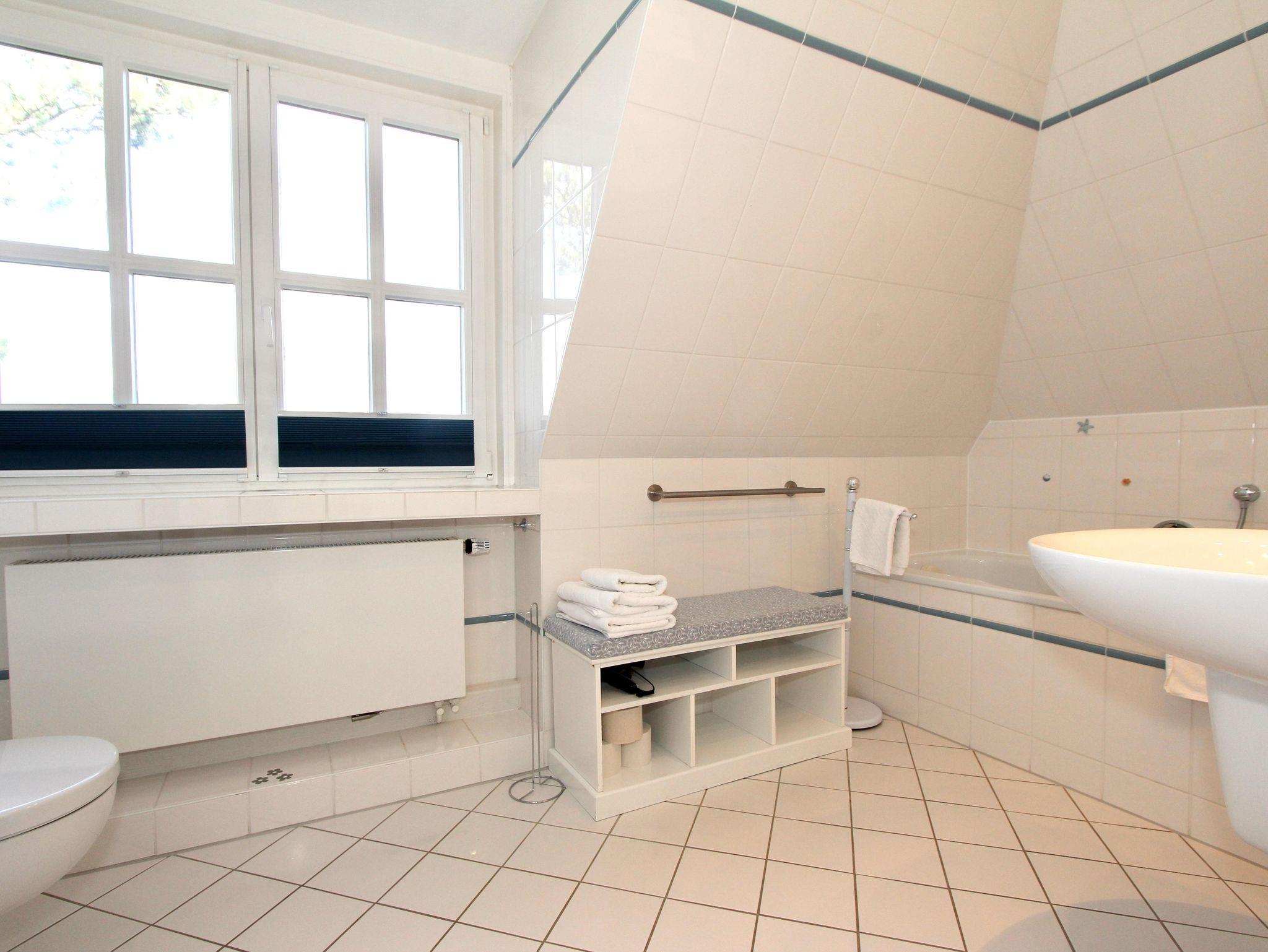 • Badezimmer mit Dusche, Badewanne und WC