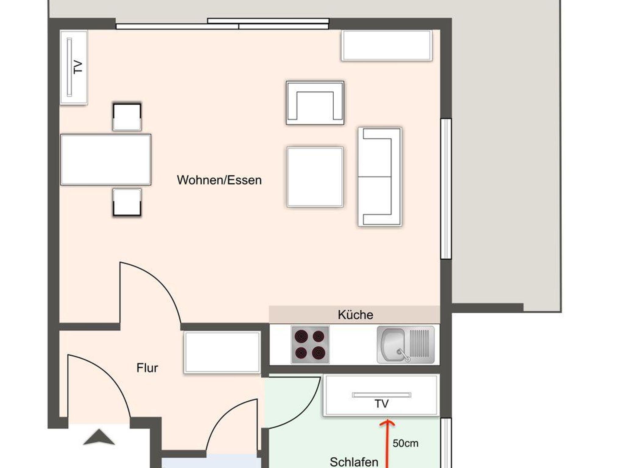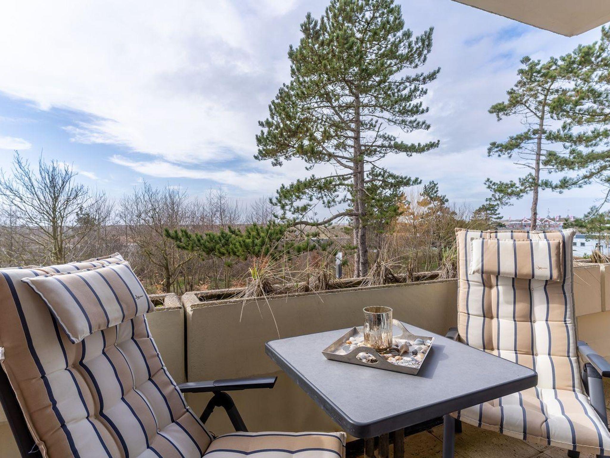 Sie genießen einen wunderschönen Ausblick von Ihrem Balkon bis zum Wasser. Gartenmöbel laden zum Entspannen bei optimaler Sonnenauslastung ein, oder einfach fallen lassen und den Sonnenuntergang genießen.