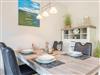 Modernes und elegantes Wohnzimmer mit Lederecksofa, Ruhesessel, TV (Sat) und Esstisch mit 4 Stühlen. Direkter Zugang zur möblierten und überdachten Gartenterrasse nach Westen mit Grillmöglichkeit. Offene Küche mit Backofen, Geschirrspüler und Kühlschrank mit Gefrierfach.