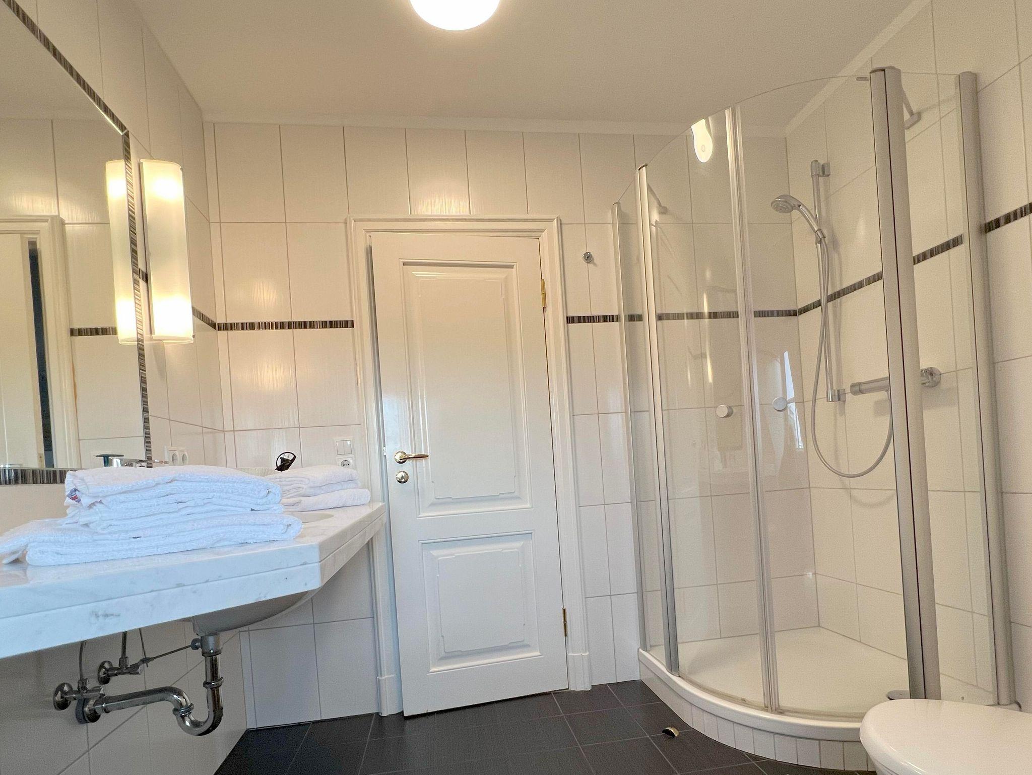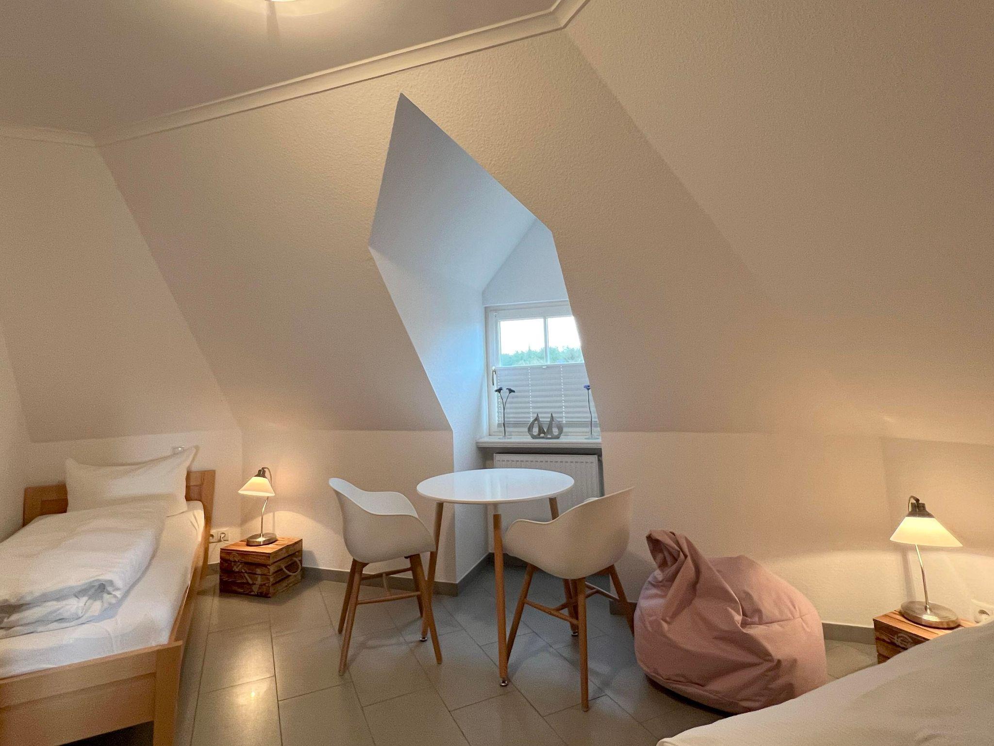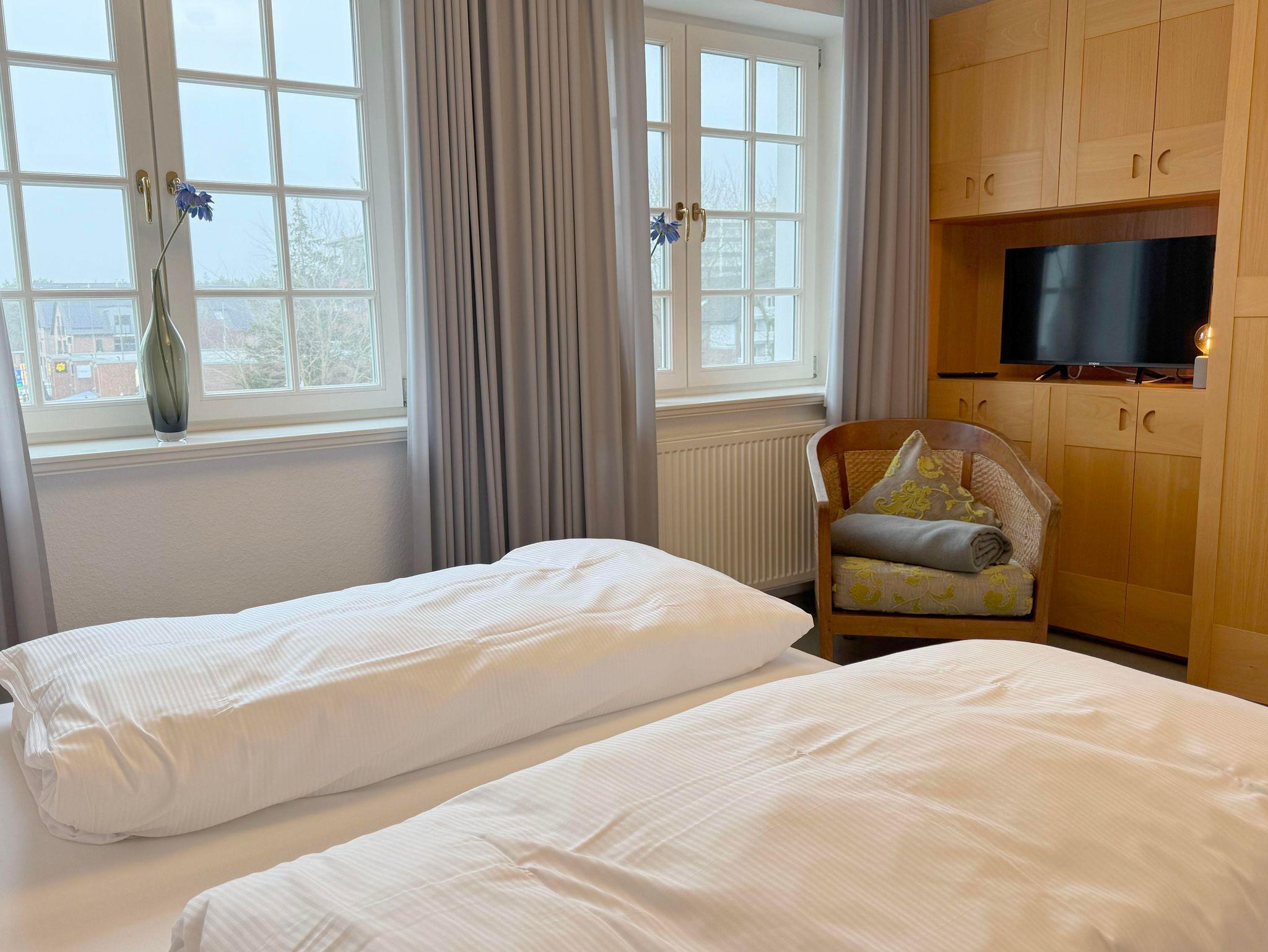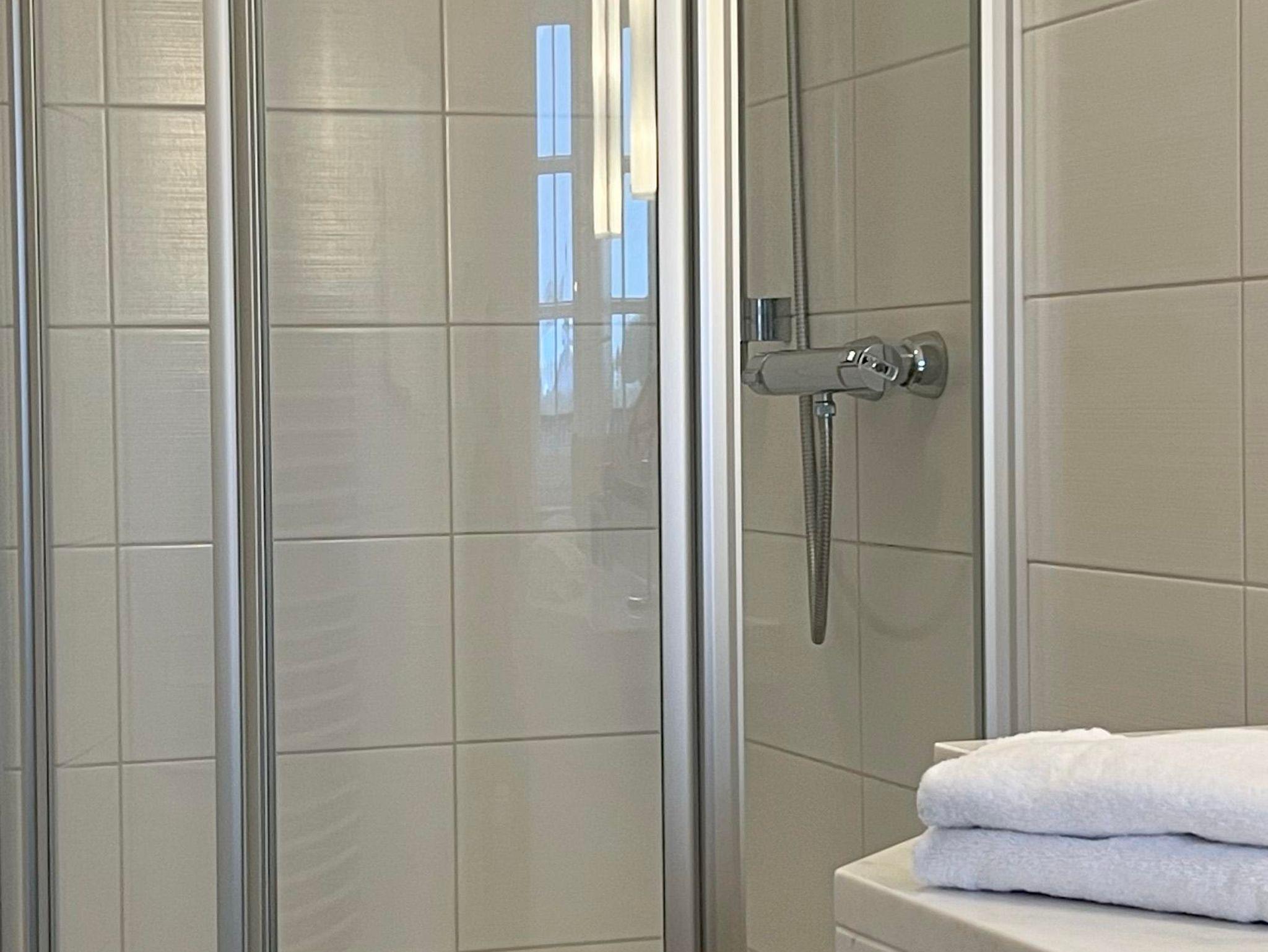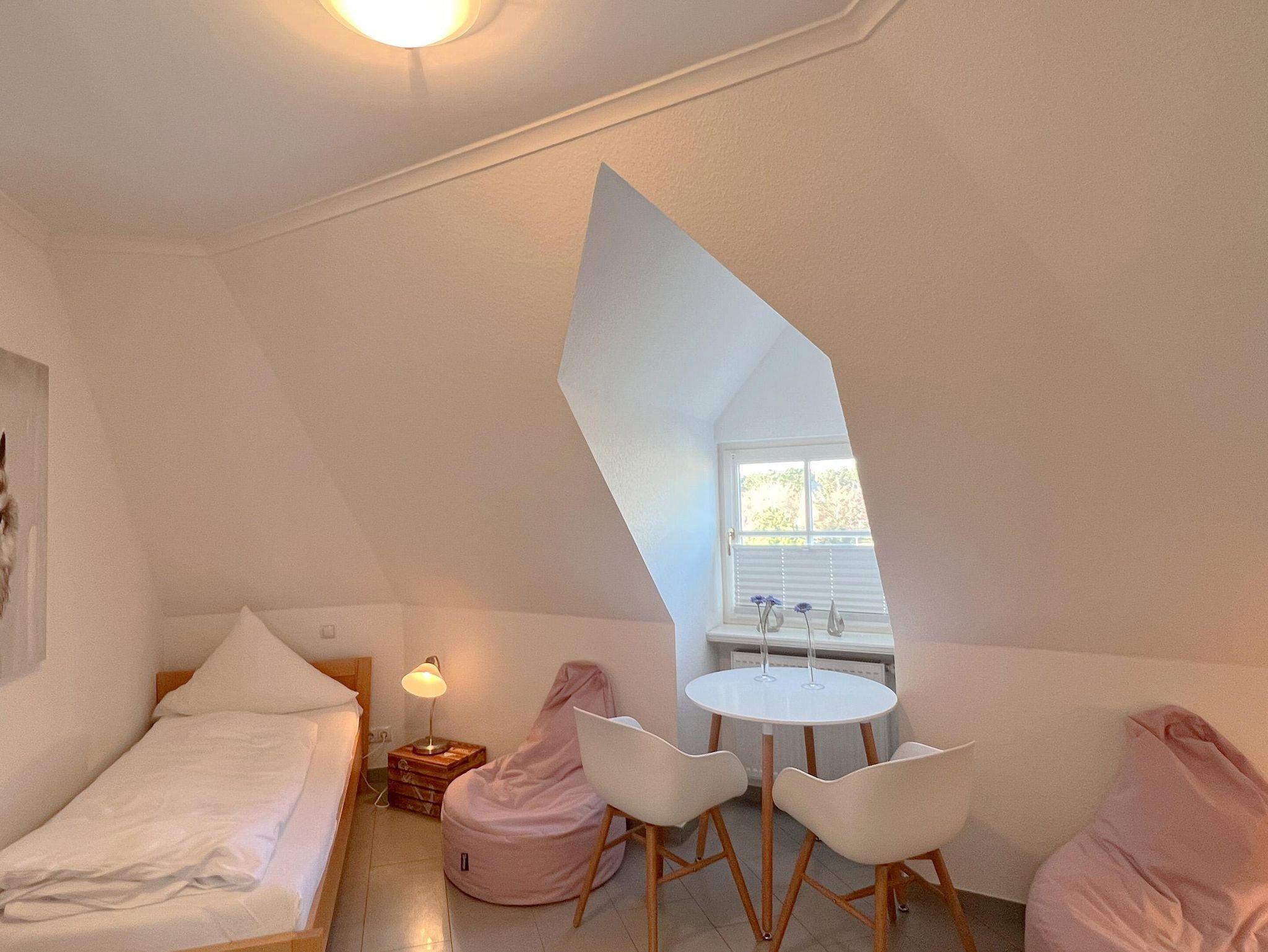 Moderne, exklusive mit 4 DTV Sternen ausgezeichnete Ferienwohnung im 2.Obergeschoss eines Geschäftshauses mit teilweise Meerblick und großer Dachterrasse für 2 - 4 Personen mitten im Zentrum.