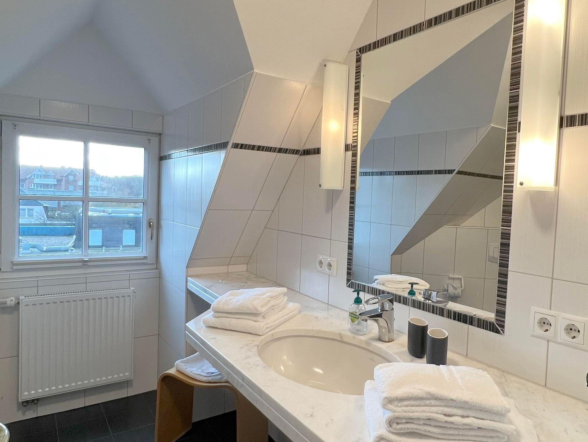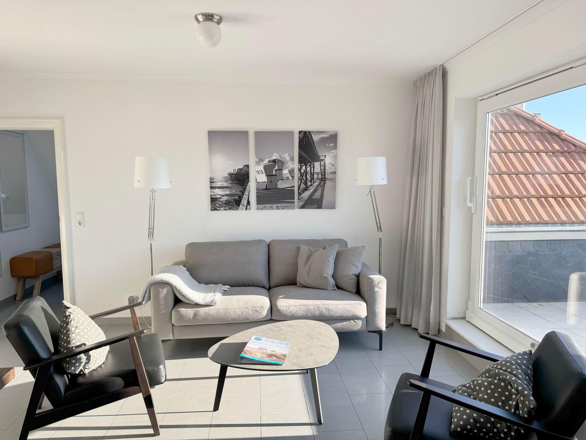 Wunderschöne, helle und moderne Ferienwohnung im Zentrum vom St. Peter Ording. Aus einigen Fenstern können Sie die Nordsee sehen.