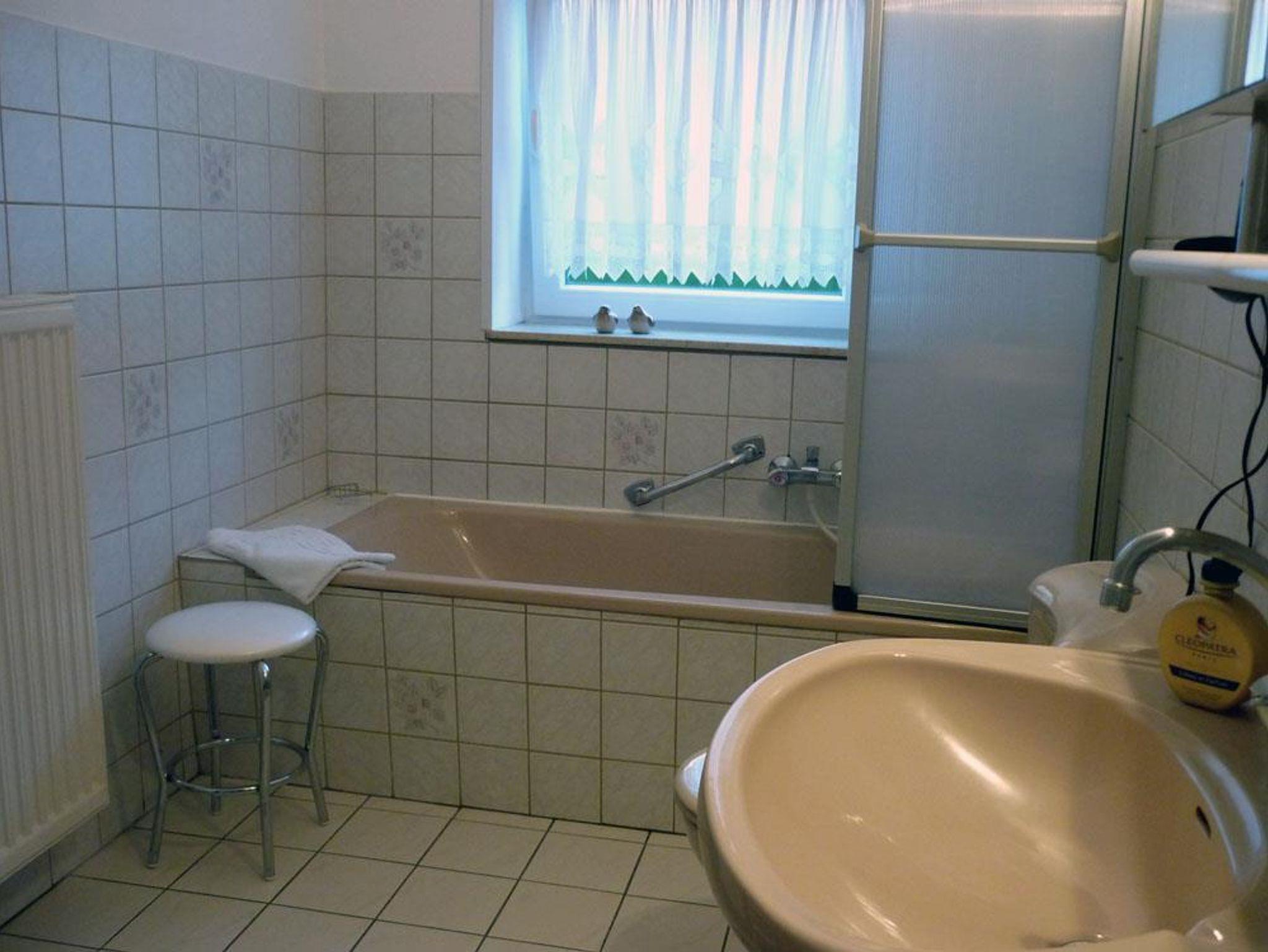 Ein Kinderhochstuhl steht im Waschraum für Sie bereit.
