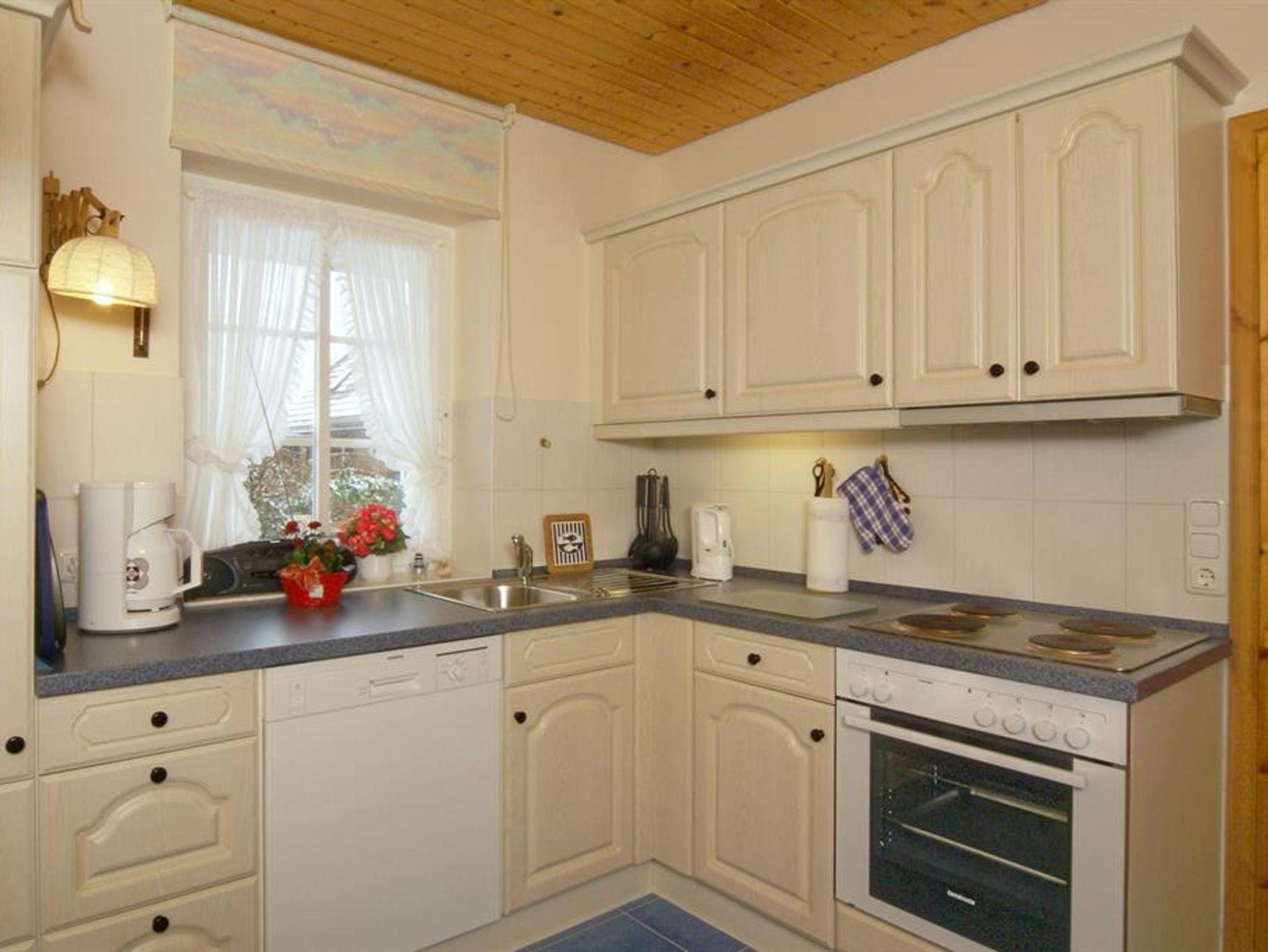 Zur Ausstattung gehören u.a. Waschmaschine, SAT-LCD-TV, Stereoanlage und Wecker. Ein Wandsafe ist eingebaut. Auch an Lichtquellen wurde in keinem Raum gespart. Sie erhalten Bettwäsche und pro Woche und Person 2 Handtücher, 1 Duschtuch, 2 Gästehandtücher, 2 Küchentücher und 1 Küchenhandtuch ohne Berechnung. Das Wohnzimmer und die Terrasse mit Strandkorb, Gartenmöbeln und Gartengrill liegen auf der Südseite. Im Wohnzimmer befinden sich neben zwei dreisitzigen Sofas, zwei Sesseln, einem Couchtisch, einem Sideboard, einem Vitrinenschrank und einer Wanduhr auch noch ein Vitrinenhängeschrank. Das Wohnzimmer ist gefliest. Auf den Fliesen liegen Teppiche. Eine zusätzliche Essecke befindet sich ebenfalls im Wohnzimmer. Das Schlafzimmer liegt im Obergeschoss an der Westseite der FRESENBORG. Eingerichtet ist es mit einem Doppelbett (Lattenrost und Bandscheibenmatratzen), zwei Nachtschränken, einem Kleiderschrank, einer Kommode, einem Schaukelstuhl, einem Bücherbord, Nachttischlampen und einer Deckenlampe und einer zusätzlich eingerichteten Leseecke. Fliegengitter vor jedem Fenster und Rauchmelder sind vorhanden. Im Obergeschoss befindet sich auch das geflieste Duschbad. Ausgestattet ist es mit Dusche, Waschbecken, Toilette, Spiegelschrank, Waschmaschine, Stuhl, Körperwaage und Vergrösserungsspiegel, Wäschekorb, vielen Haken und einer Ablage. Bademäntel sind vorhanden. Auf dem oberen Flur ist außerdem ein Ganzkörperspiegel angebracht. Im Erdgeschoss finden Sie außer dem Wohnzimmer die Küche. Sie ist ebenfalls gefliest und mit Einbauelementen versehen. Außer den oben erwähnten Elektrogeräten sind eine Essecke, Uhren und zusätzlich ein kleiner Hängeschrank vorhanden. Mit Geschirrspüler, Mikrowelle, Handmixer, Pürierstab, Kaffeemaschine, Radio, Toaster, Eierkocher und Wasserkocher haben Sie alle Annehmlichkeiten einer modernen Küche zur Verfügung. Reichlich Geschirr, Besteck, Töpfe und Reinigungsmittel stehen bereit, wenn Sie sich einmal vom Bummel durch die abwechslungsreiche, internationale Gastronomie unseres Ortes erholen wollen. Vom Flur, der mit einer Garderobe und einer Ablage ausgestattet ist, gehen die Extra-Toilette mit Waschbecken und ein kleiner Abstellraum ab. In diesem sind Gefrierschrank, Staubsauger, Reinigungsgeräte, Putzmittel, Bügeleisen und -brett, Gartenauflagen, usw. untergebracht. Genießen Sie Ihren Urlaub von der ersten Minute an!
