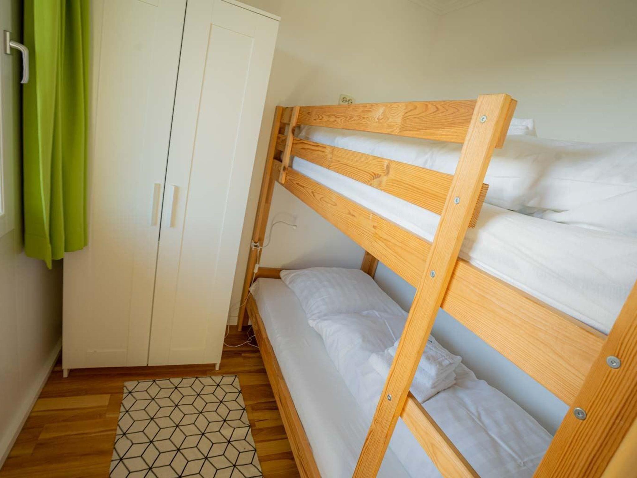 2. Schlafzimmer mit 2 Etage-Einzelbetten (je 90x200cm), Kleiderschrank und Meerblick.