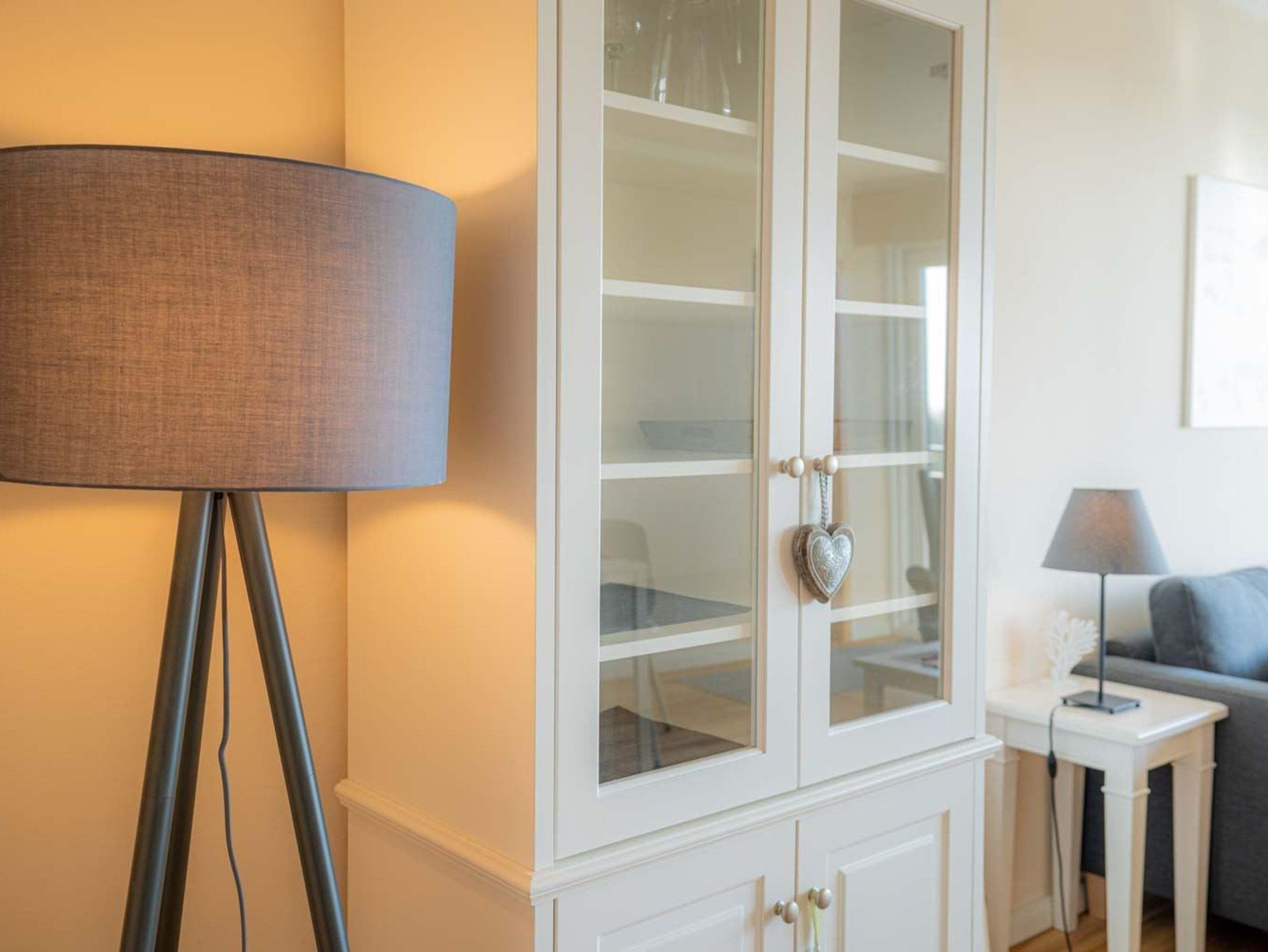 Moderne, elegante 3-Zimmer-Ferienwohnung Studio am Meer im Haus Atlantic mit ca. 47 qm auf 1 Ebene (8. OG, mit Fahrstuhl) für bis zu 4 Personen. In strandnaher Lage im Ortsteil Bad in St. Peter-Ording. Mit einmalig schönem Meerblick. Sehen Sie beide Leuchttürme von Eiderstedt!