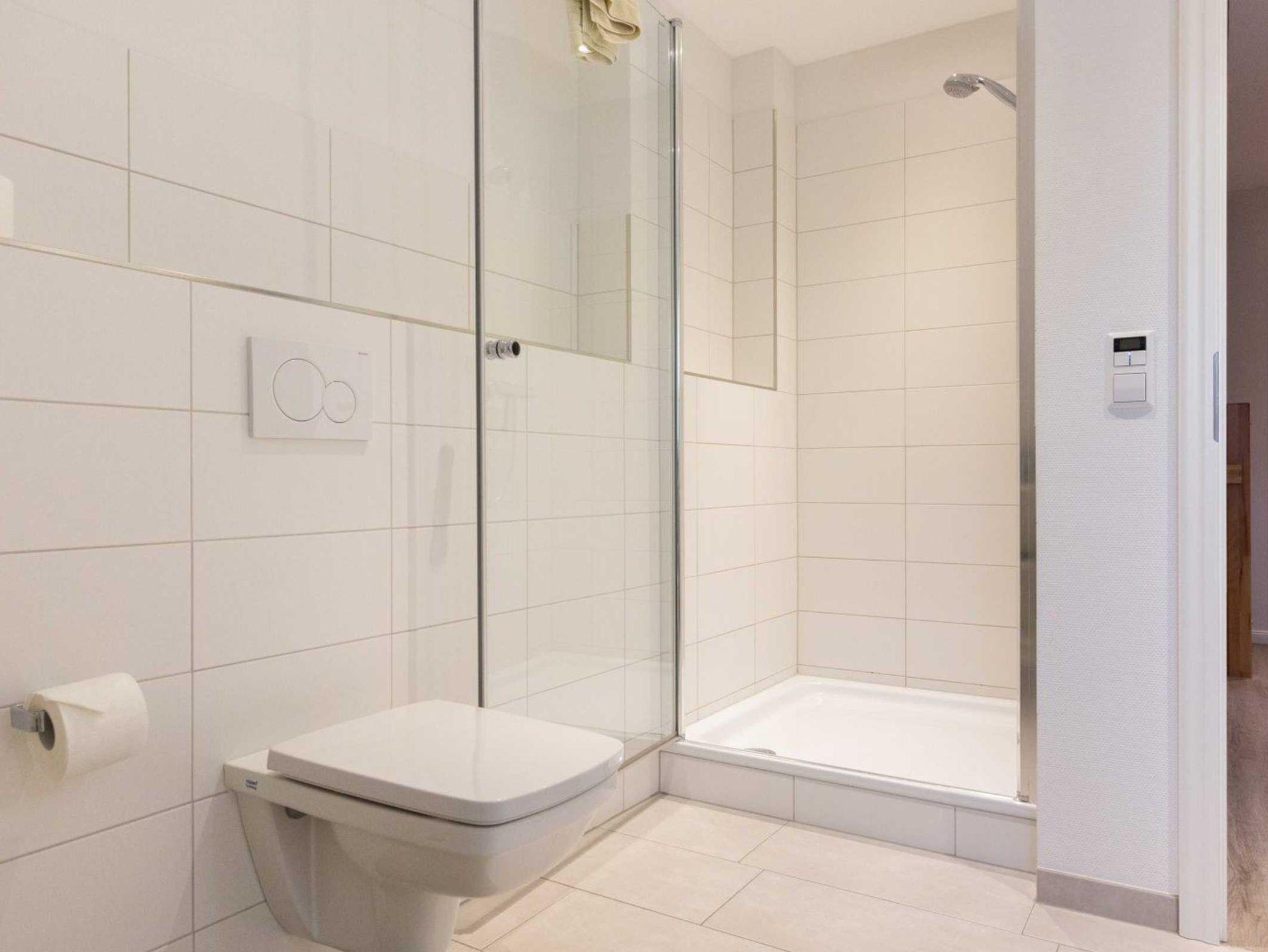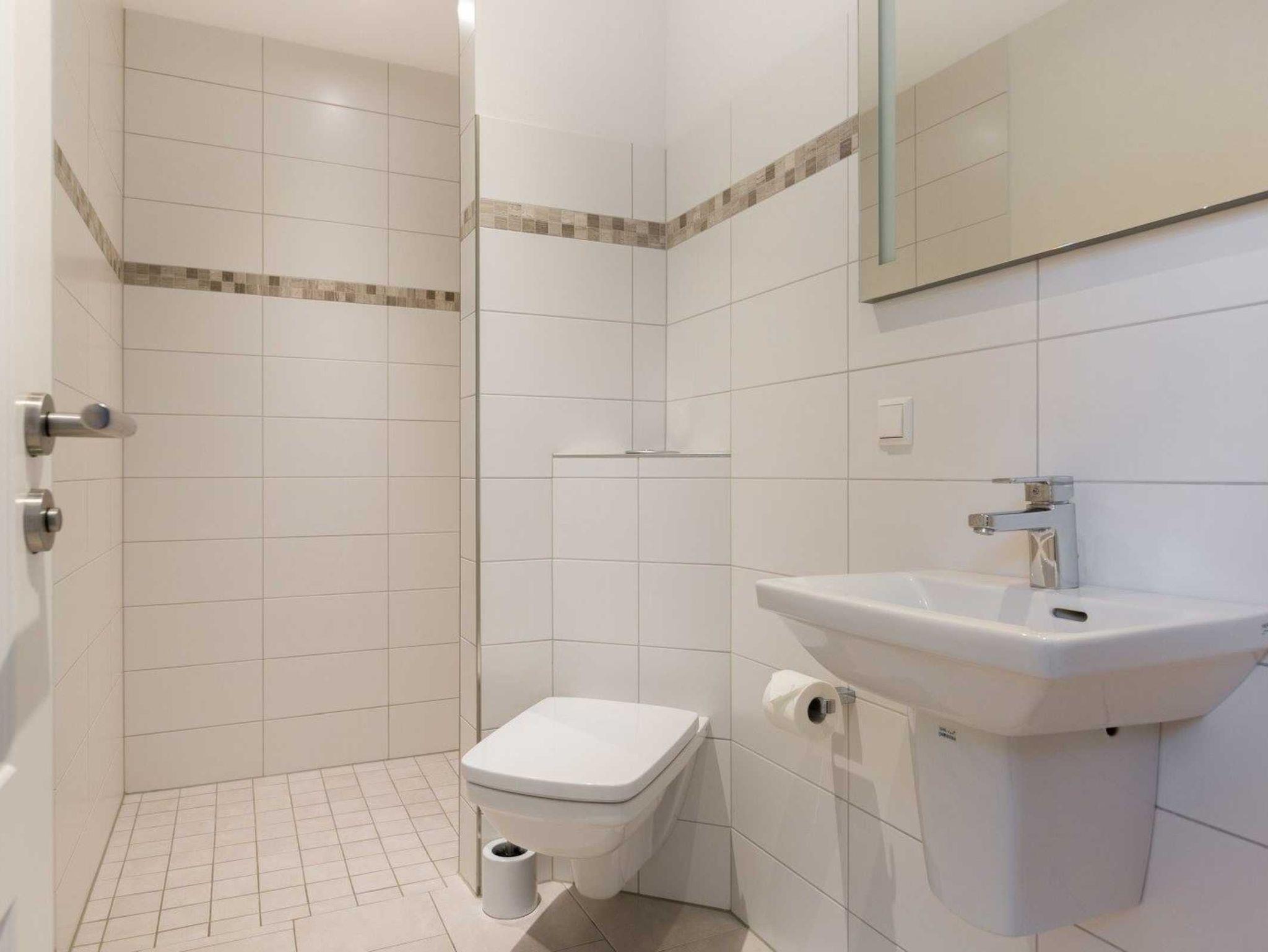 2. Badezimmer mit Dusche (niedriger Eintritt: ca. 15 cm), WC, Föhn und Tageslicht.