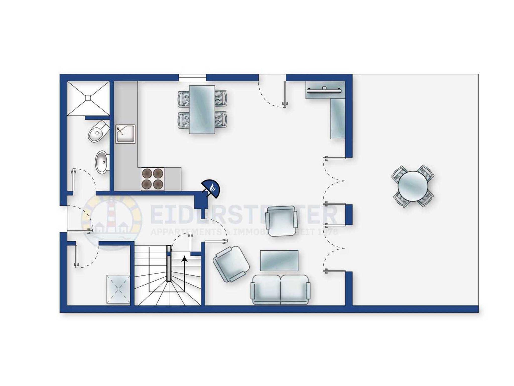 Exklusive Doppelhaushälfte 5a unter Reet im Landhaus am Störweg mit 4 Zimmern und ca. 107 qm auf 3 Ebenen (EG, OG, DG) für bis zu 5 Personen (Wohlfühlbelegung: max. 4 Erwachsene). In ruhiger Lage im Ortsteil Böhl in St. Peter-Ording. Die moderne und liebevolle Einrichtung bietet allerhöchsten Wohnkomfort. Hunde sind herzlich willkommen.
