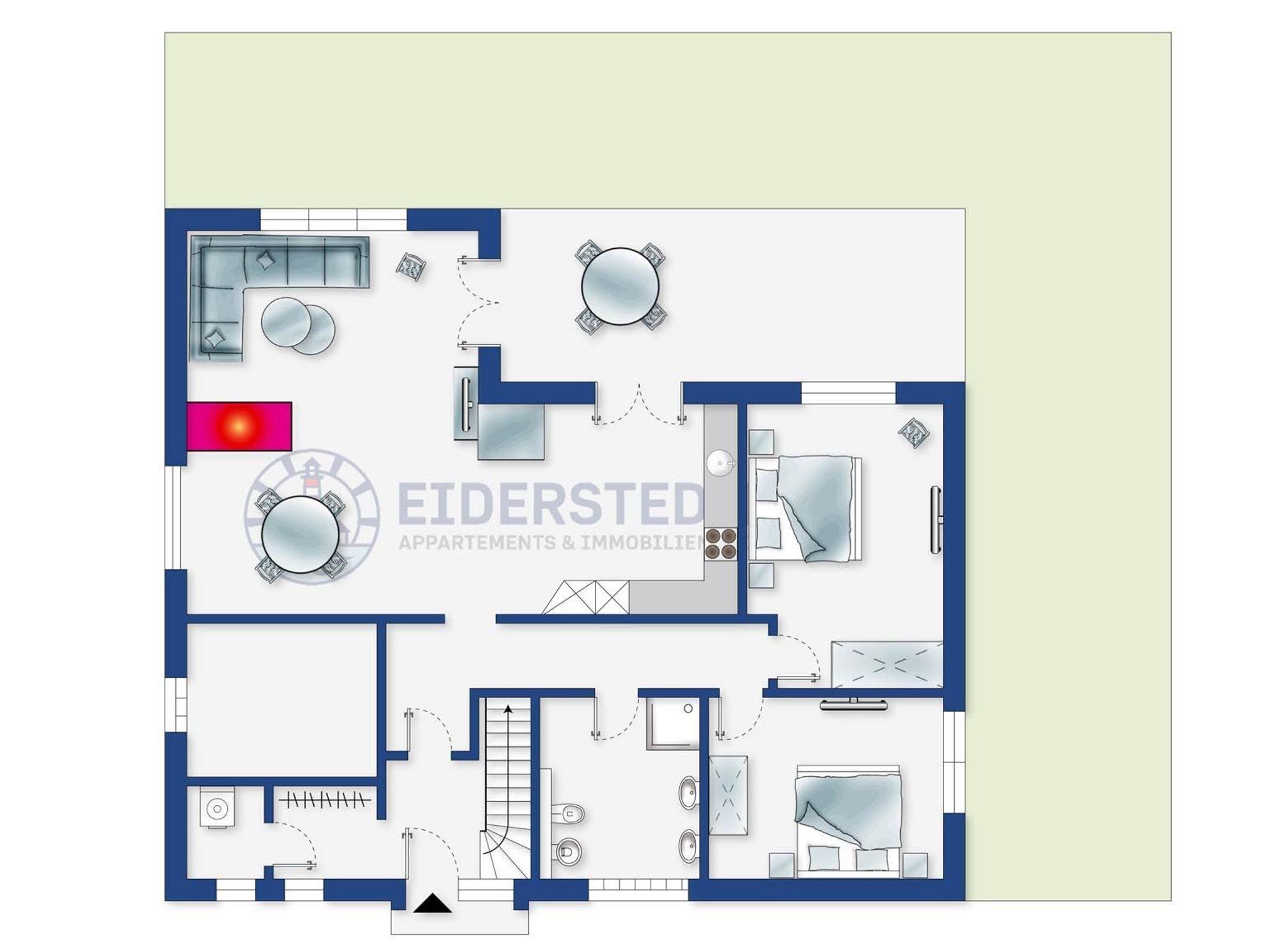 Exklusive 3-Zimmer-Ferienwohnung MeerFreude mit ca. 105 m² auf 1 Ebene (EG) für bis zu 4 Personen. In traumhaft schöner, absolut ruhiger Wohnlage im Ortsteil Böhl in St. Peter-Ording. Dieses Design-Domizil wurde von einem Inneneinrichter geschmackvoll und hochwertig für Ihren Traum-Urlaub eingerichtet. Das ideale Urlaubsdomizil für alle, die Entspannung und Komfort suchen und sich verwöhnen möchten.