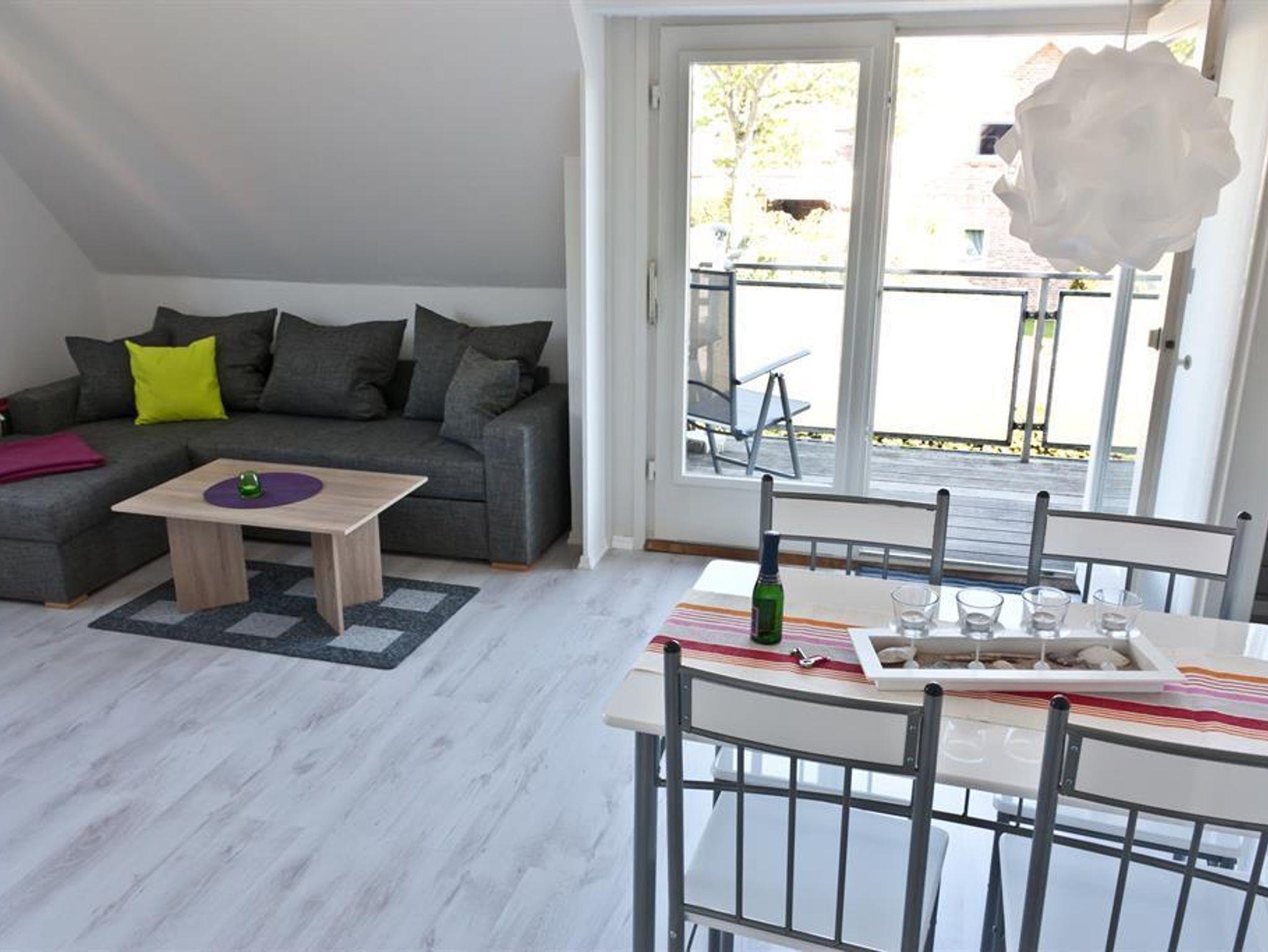 Die Ferienwohnung wurde im Dezember 2013 total renoviert und neu eingerichtet Sie verfügt über einen Wohnschlafraum mit Schlafcouch, sep. Küche, 1 Schlafraum mit Doppelbett, Dusche/WC. Moderne Einrichtung. F-TV - Flachbildschirm mit SAT-Anlage. Großer möblierter Balkon. PKW - und Fahrradstellplatz
