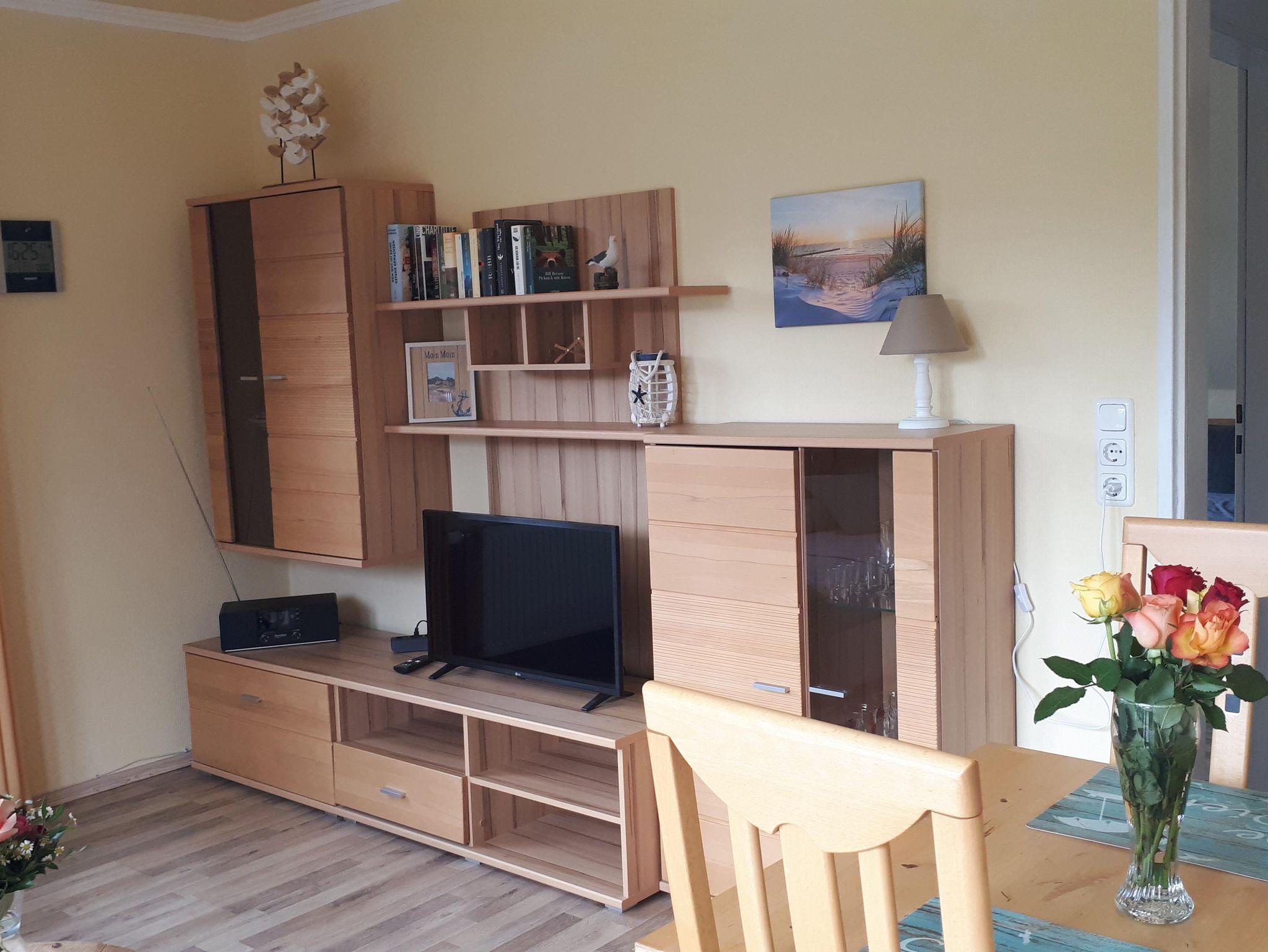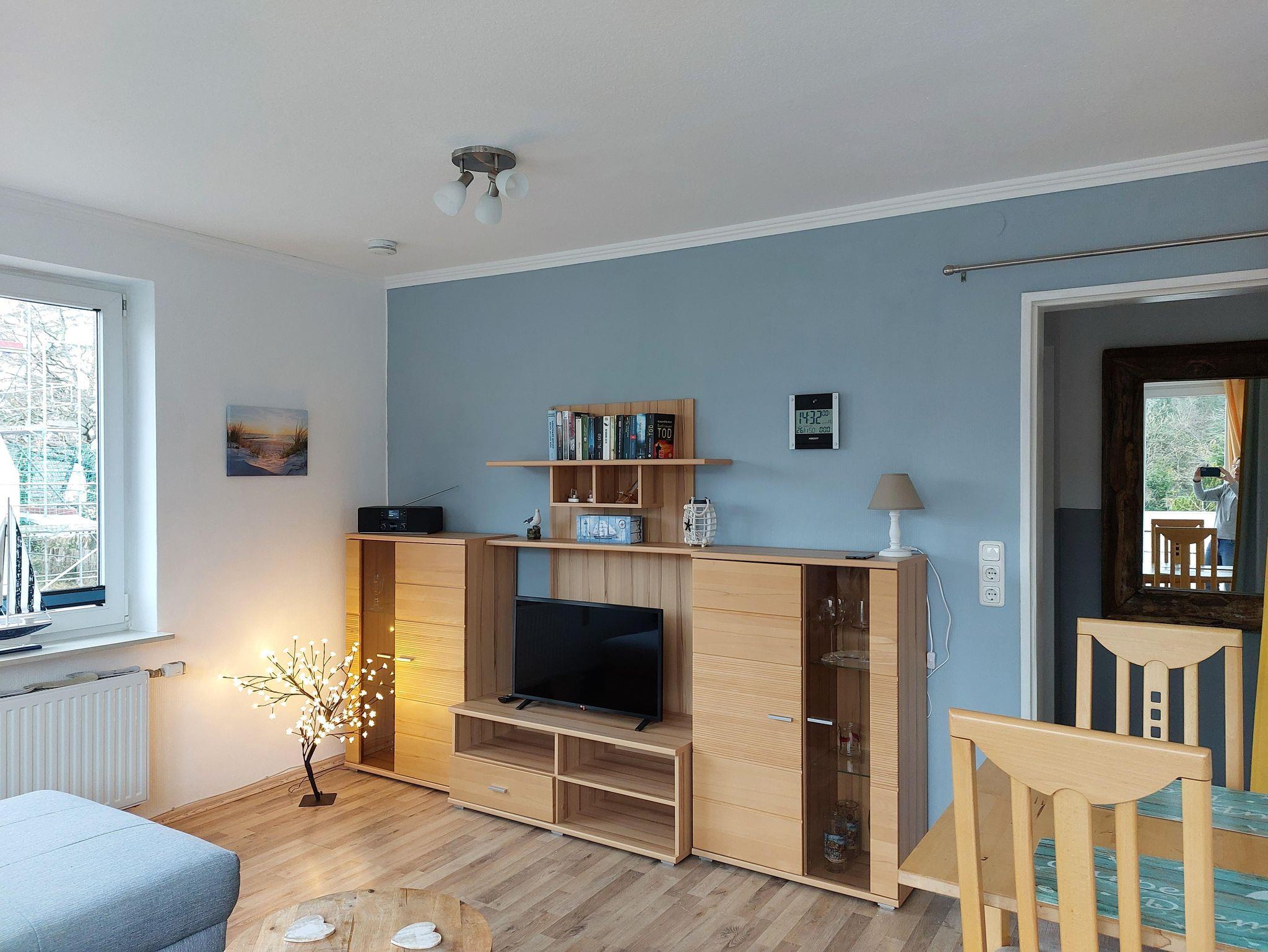 • Die Ferienwohnung hat einen Flachbildschirm-TV, Kühlschrank mit Gefrierfach, Föhn ist vorhanden, WLAN-Anschluss.