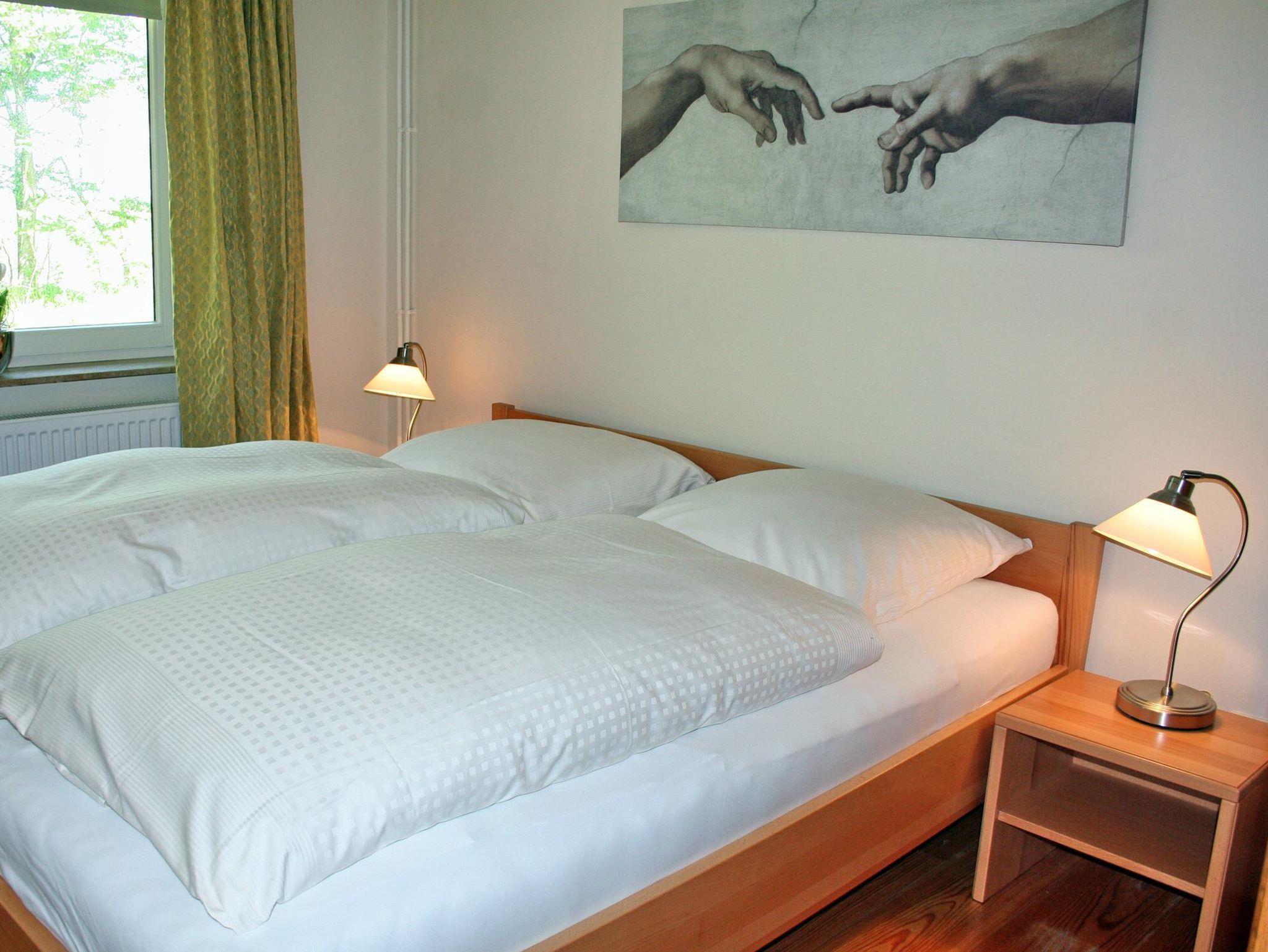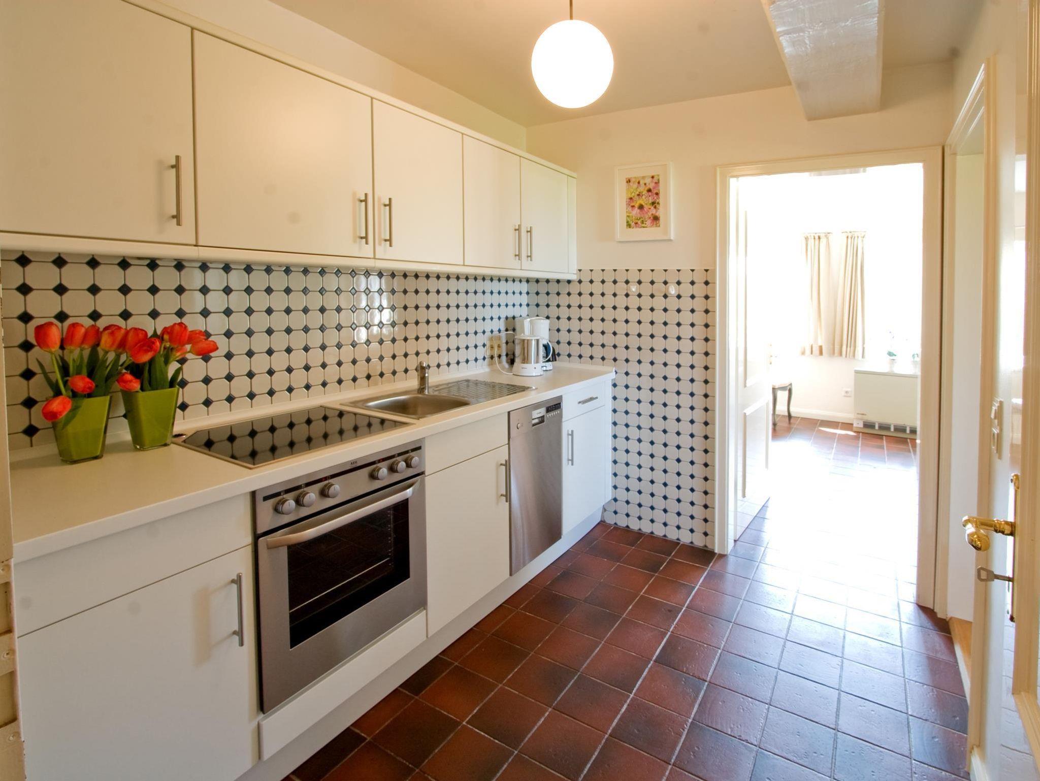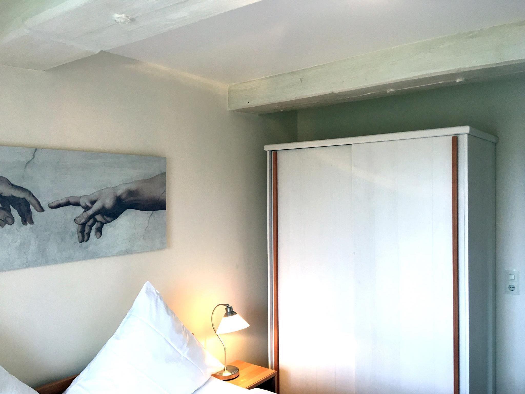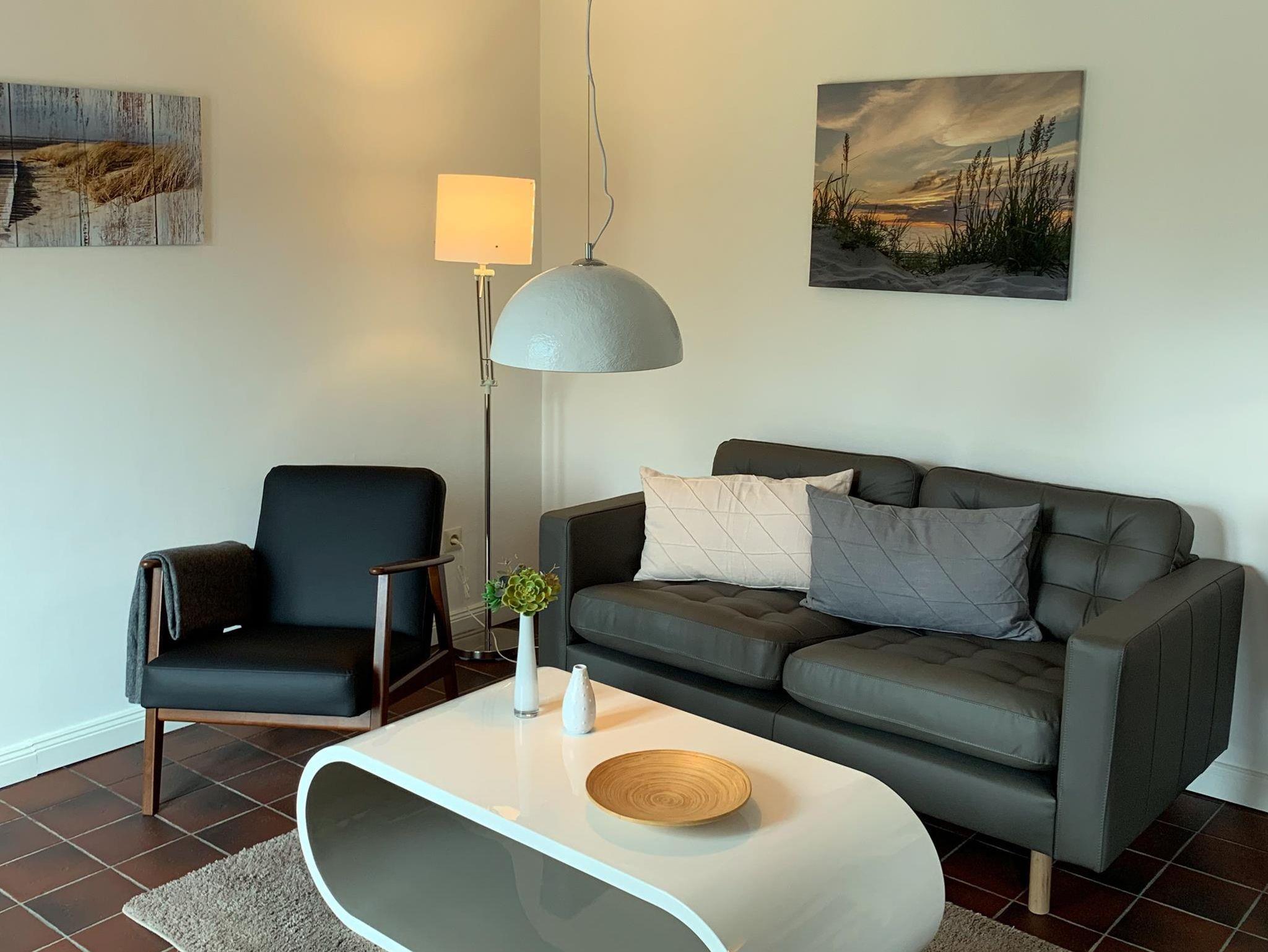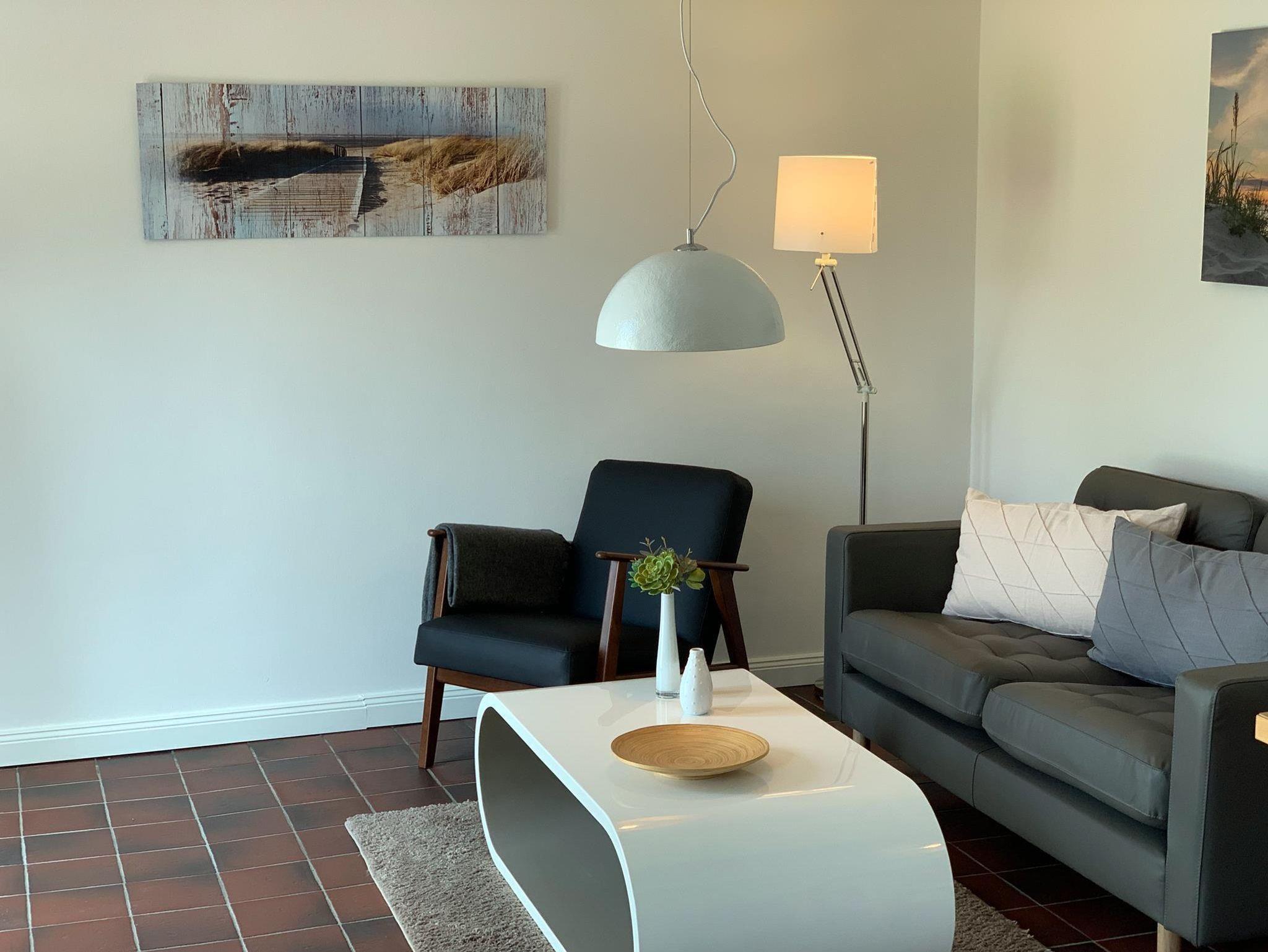 In den Schlafräumen sind noch die alten Holzfußböden erhalten, der restliche Bereich wurde gefliest, sichtbare Deckenbalken und Füllungstüren geben der Wohnung den besonderen Charme. Beide Wohnungen sind für 4 Personen ausgelegt und haben jeweilig Terrassen mit Strandkorb und Gartenmöbeln.