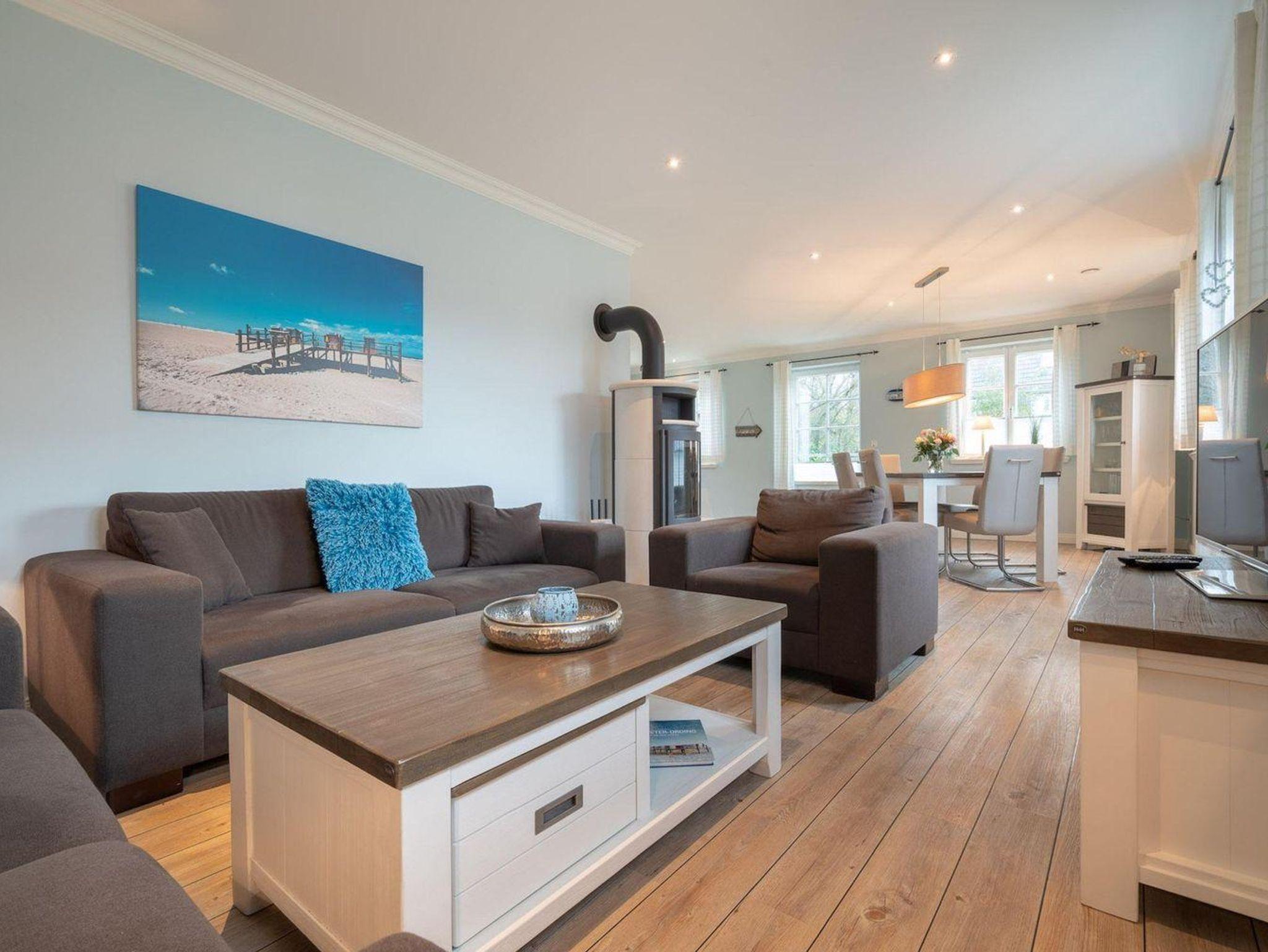 Die luxuriöse Haushälfte unter Reet wurde mit exklusiven Möbeln ausgestattet und bietet großzügigen Platz für 6 Personen. Das Grundstück mit Stellplatz und 2 Terrassen inklusive Gartenmöbeln und Strandkorb wurde mit hübschen Pflanzen und einem Friesenwall angelegt