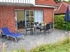 Terrasse: 5 Hochlehnerstühle, 1 Tisch, 3 Liegen