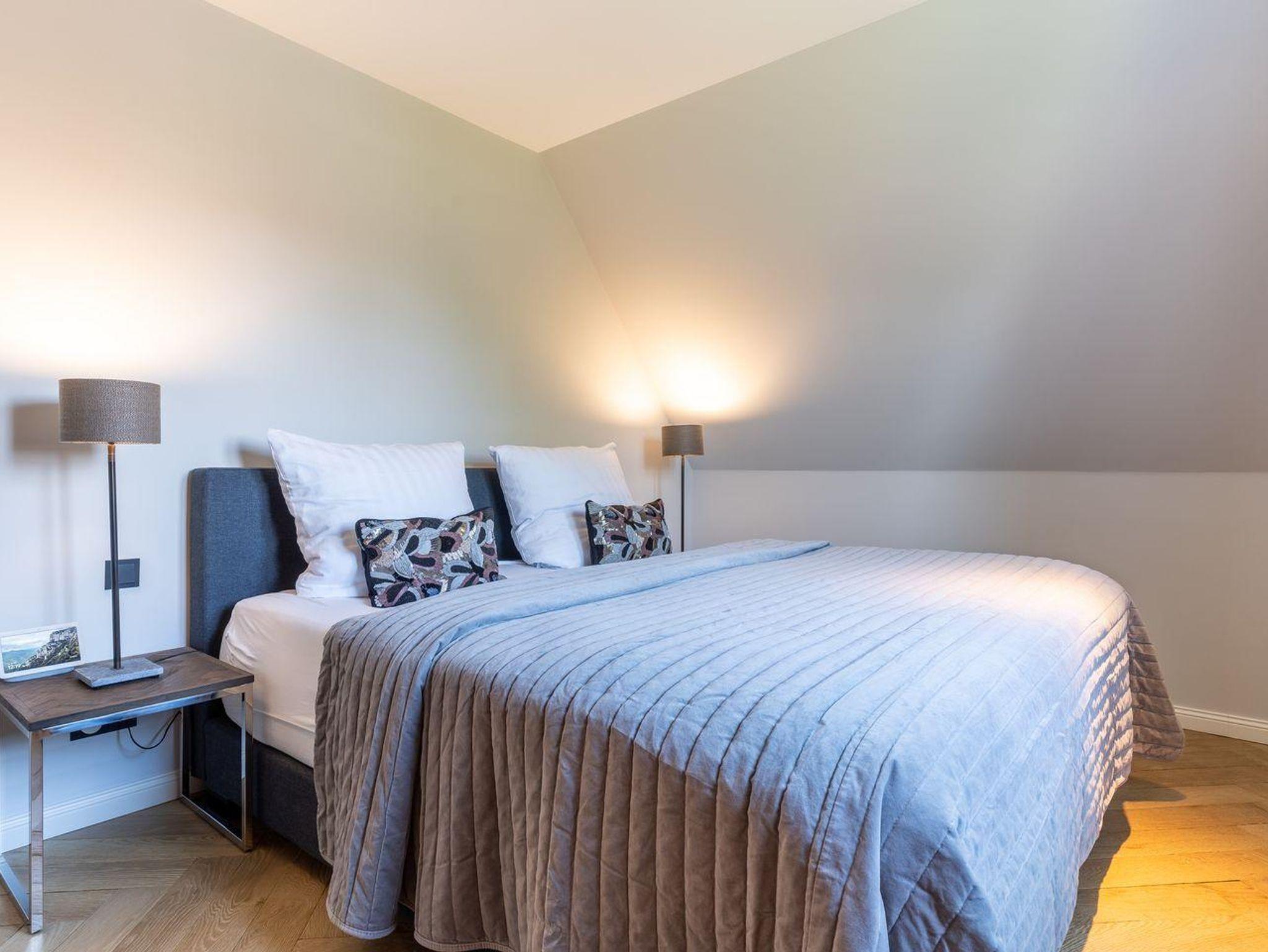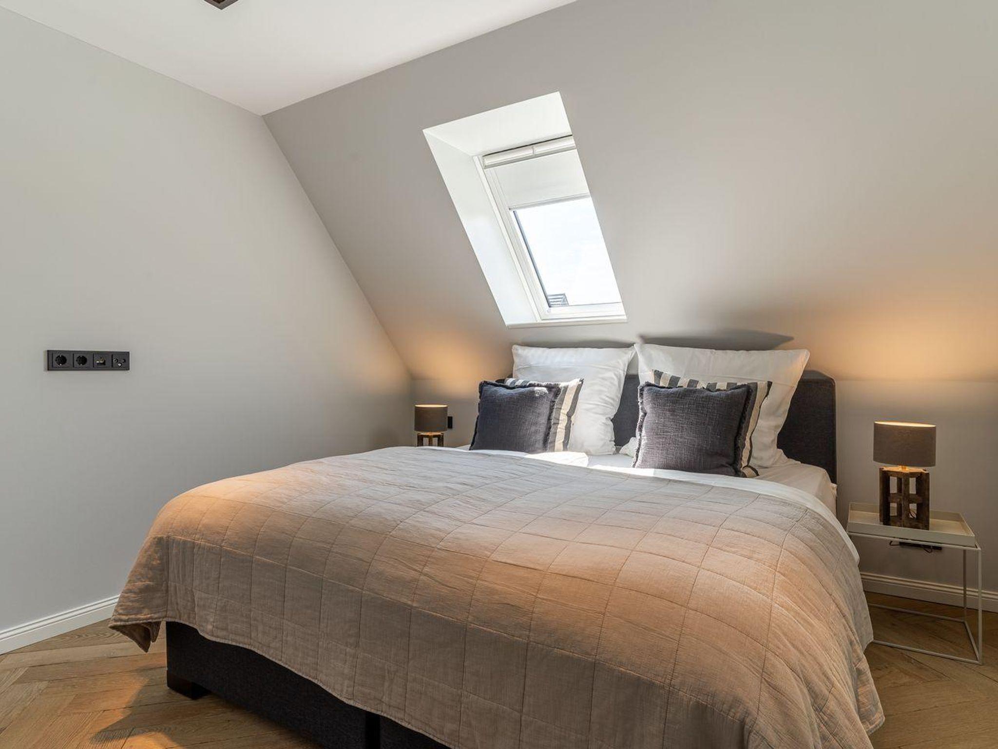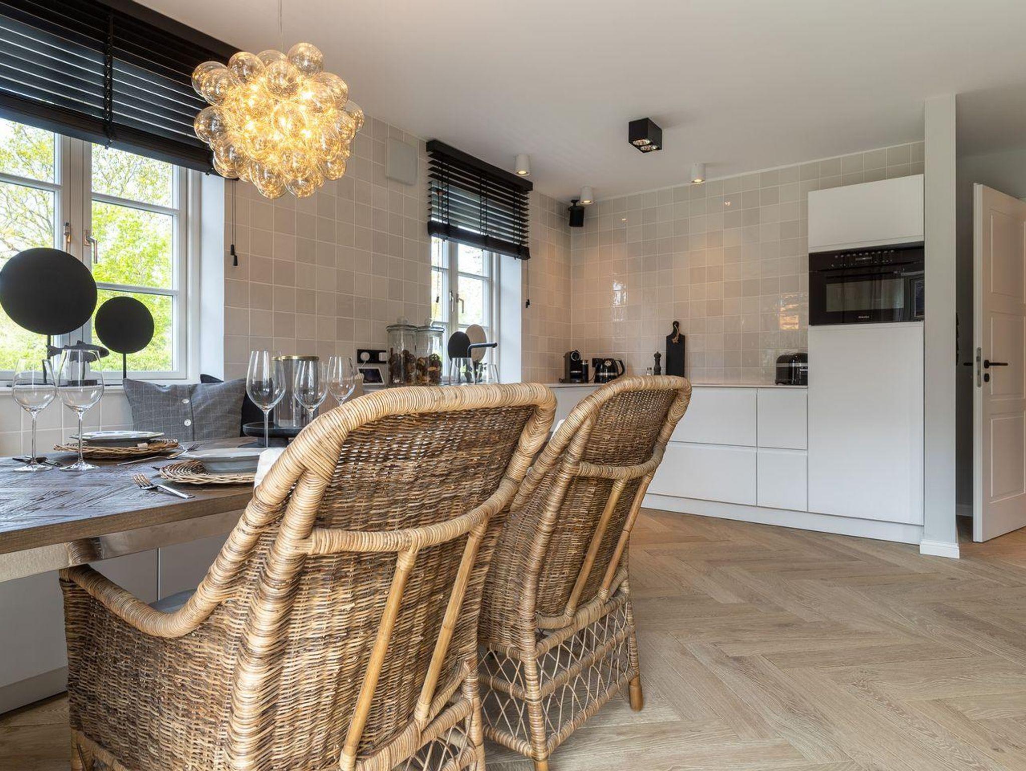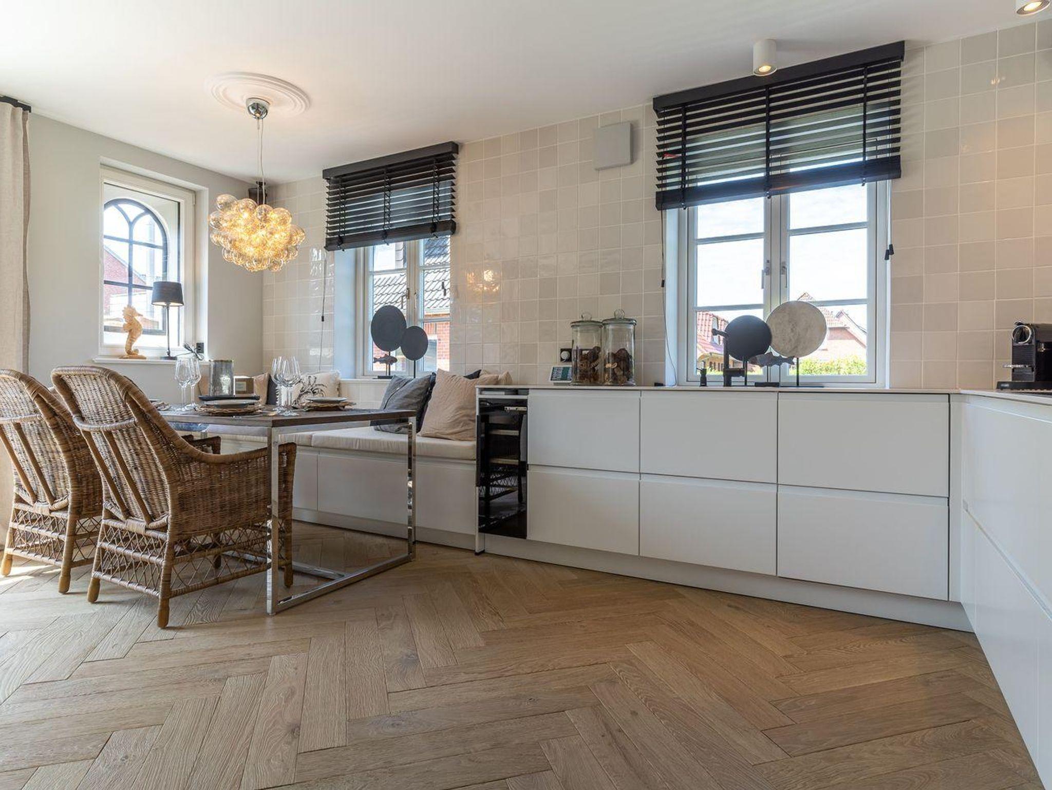 Die stilvolle und ganz besonders eingerichtete Doppelhaushälfte verfügt über ca. 90 m² Wohnfläche über 3 Etagen und bietet Platz für 1-4 Personen. Im Erdgeschoss befindet sich ein großer, lichtdurchfluteter Wohnraum mit gemütlichem Essbereich, einer offenen Küche und Gaskamin. Die Küche verfügt über hochwertige Elektrogeräte, einen Weinkühlschrank und bietet genügend Platz zum gemeinsamen Kochen. An den Wohnbereich schließen sich ein Flur, ein Gäste WC sowie ein Abstellraum an. Über eine Holztreppe gelangt man in das Obergeschoss. Zwei Schlafzimmer mit je einem Boxspring-Doppelbett (180x200 m) sind ausgestattet mit großen Kleiderschränken. Ein traumhaftes, vollausgestattetes Badezimmer im OG, mit einer Dusche, einer freistehenden Badewanne und einer Sauna runden das hochwertige Hauskonzept ab und lassen keine Wünsche offen. Über eine weitere Holztreppe geht es vom Flur ins Dachgeschoss. Hier finden Sie ein weiteres Zimmer mit einem ruhigem Arbeitsbereich und zwei gemütlichen Loungeliegen.