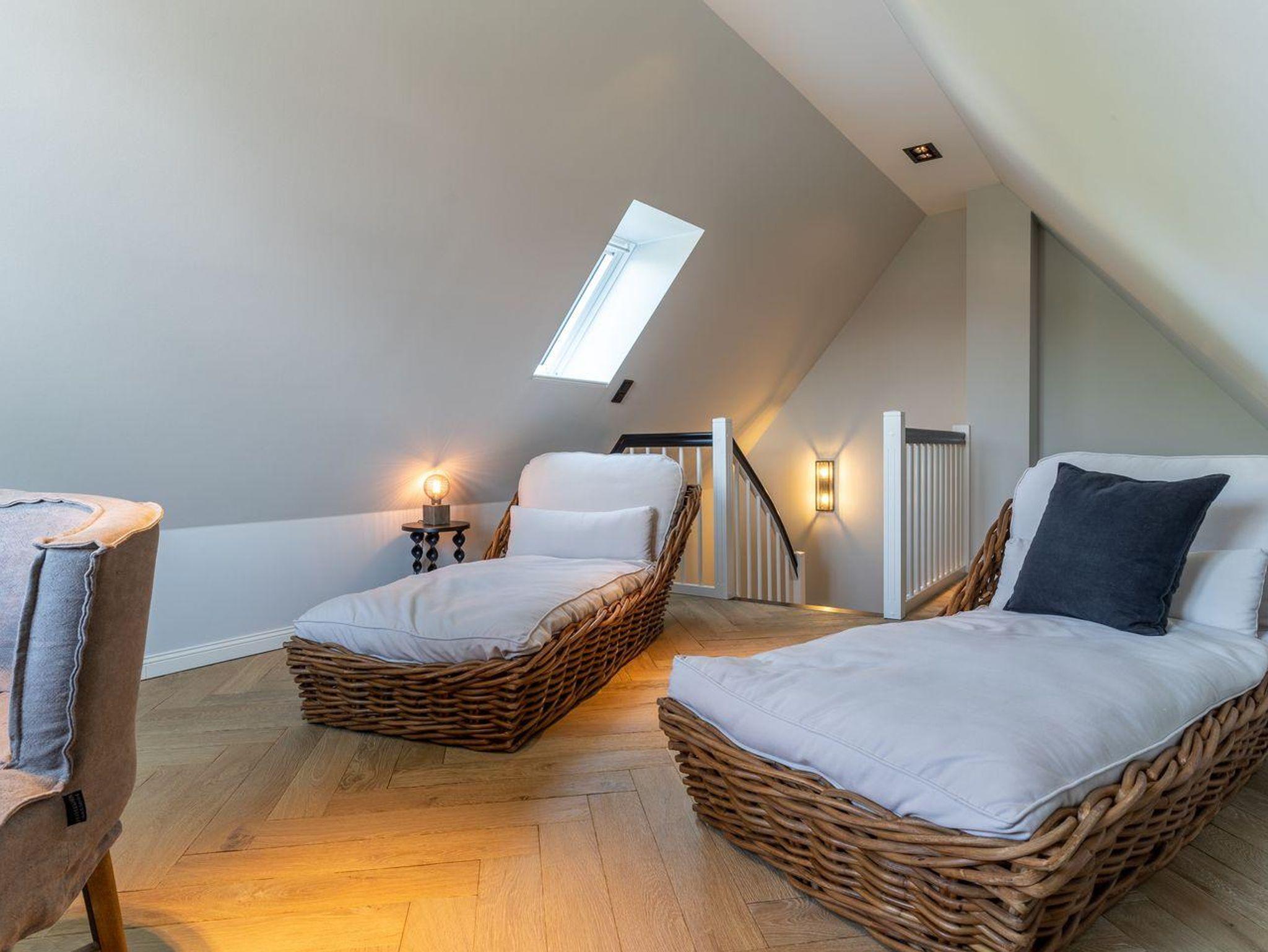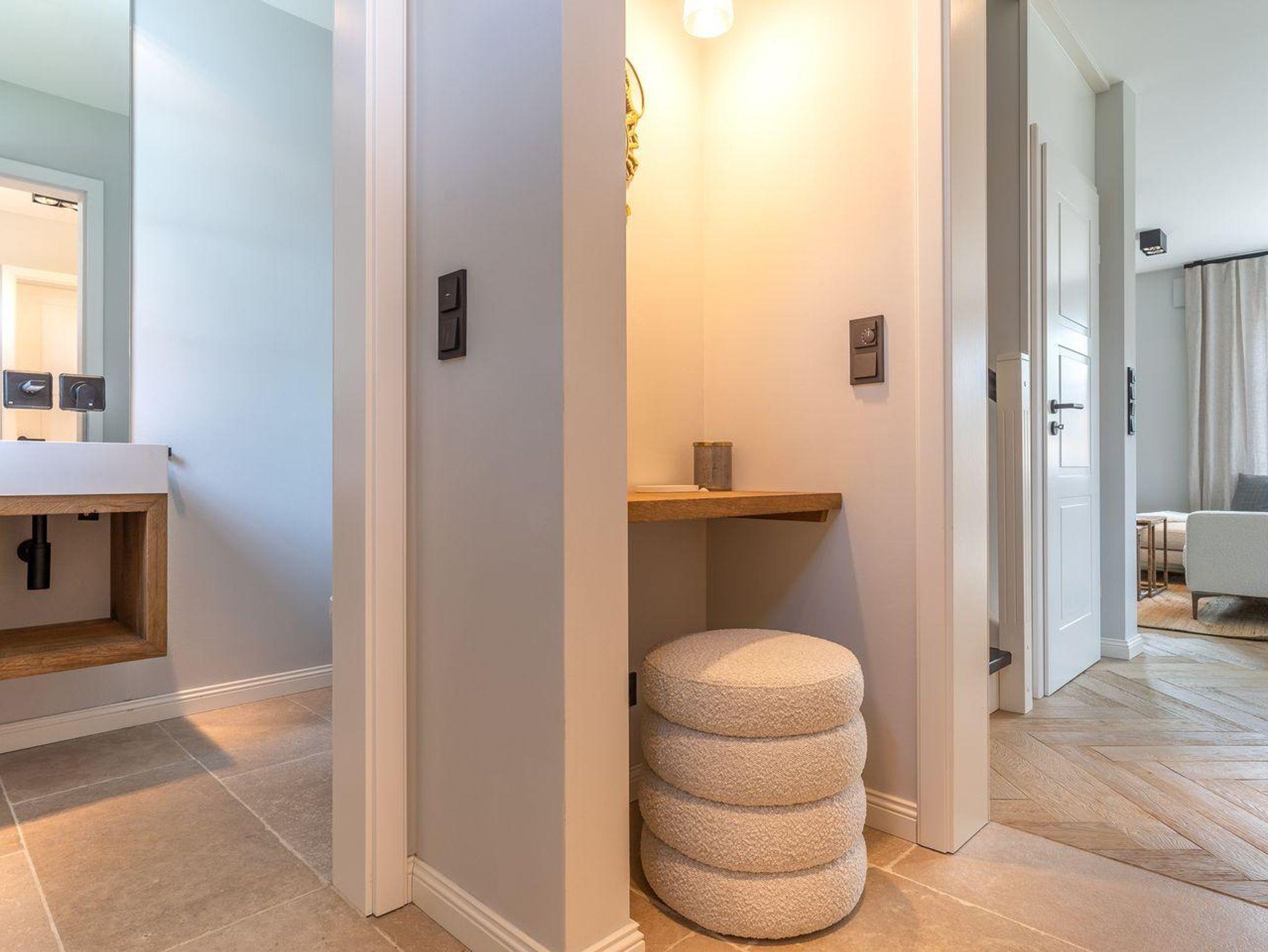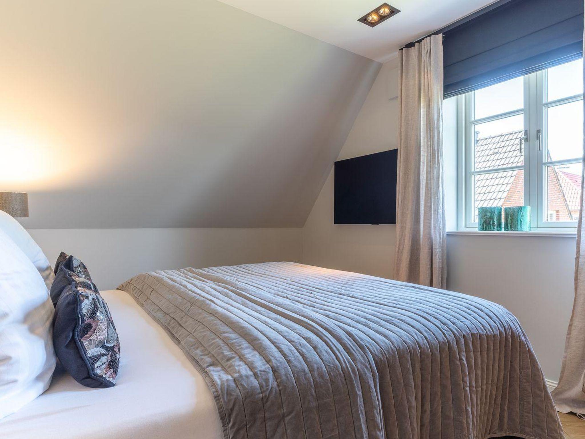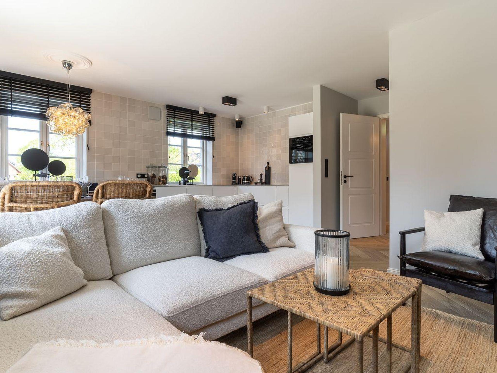 Die stilvolle und ganz besonders eingerichtete Doppelhaushälfte verfügt über ca. 90 m² Wohnfläche über 3 Etagen und bietet Platz für 1-4 Personen. Im Erdgeschoss befindet sich ein großer, lichtdurchfluteter Wohnraum mit gemütlichem Essbereich, einer offenen Küche und Gaskamin. Die Küche verfügt über hochwertige Elektrogeräte, einen Weinkühlschrank und bietet genügend Platz zum gemeinsamen Kochen. An den Wohnbereich schließen sich ein Flur, ein Gäste WC sowie ein Abstellraum an. Über eine Holztreppe gelangt man in das Obergeschoss. Zwei Schlafzimmer mit je einem Boxspring-Doppelbett (180x200 m) sind ausgestattet mit großen Kleiderschränken. Ein traumhaftes, vollausgestattetes Badezimmer im OG, mit einer Dusche, einer freistehenden Badewanne und einer Sauna runden das hochwertige Hauskonzept ab und lassen keine Wünsche offen. Über eine weitere Holztreppe geht es vom Flur ins Dachgeschoss. Hier finden Sie ein weiteres Zimmer mit einem ruhigem Arbeitsbereich und zwei gemütlichen Loungeliegen.