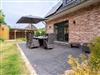 Von dort erreichen Sie die südwestlich ausgerichtete und mit Stühlen, großem Tisch und Lounge Garnitur ausgestattete, mit edlem schwarzen Klinker gepflasterte Terrasse.