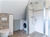 Von dort gelangen Sie in ein weiteres Badezimmer, das mit Waschbecken, Toilette und bodengleicher Dusche ausgestattet ist. Ebenfalls finden Sie dort den hauseigenen Waschtrockner.