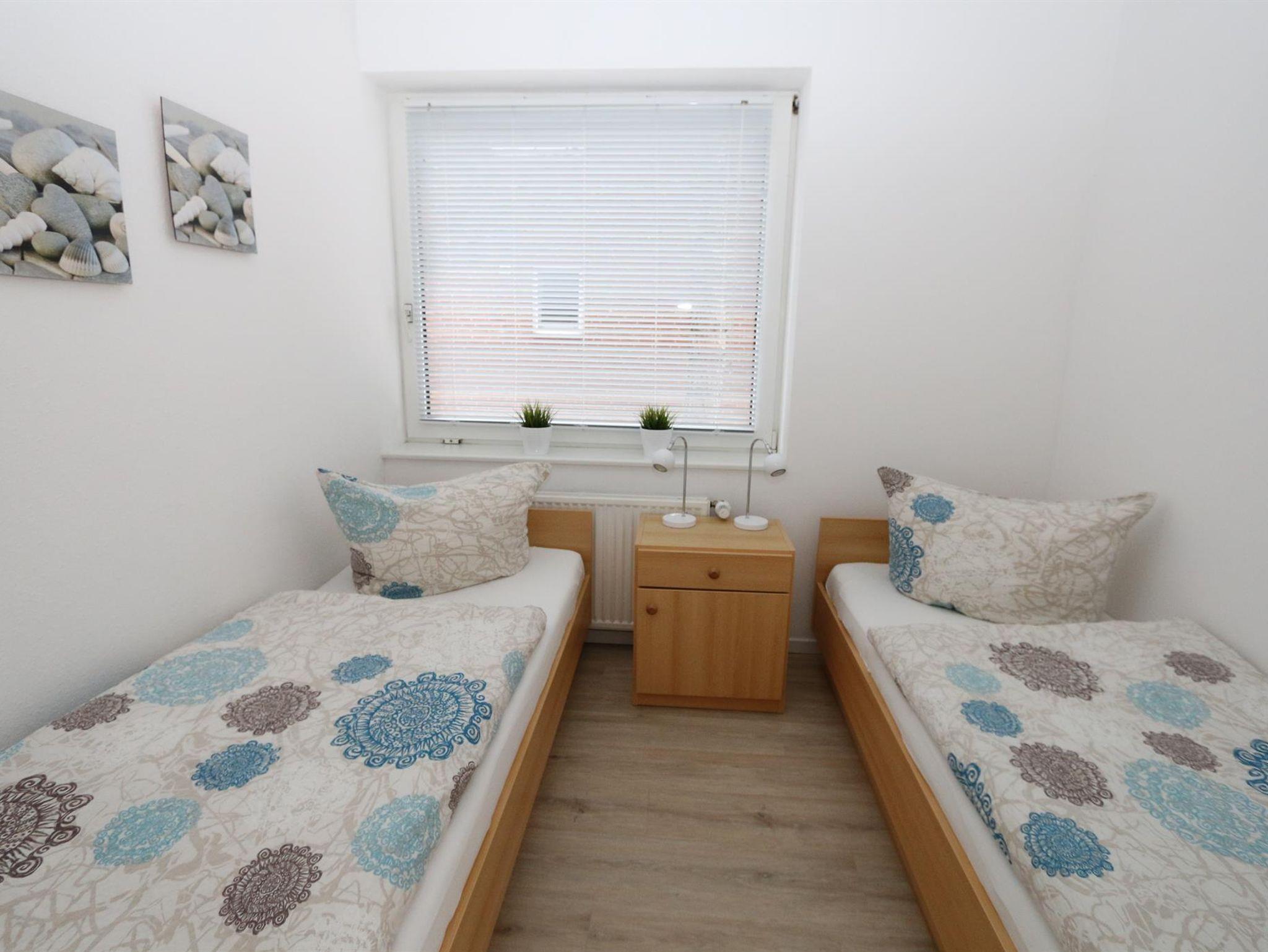 Schlafzimmer mit 2 Einzelbetten, Duschbad, Flur mit Garderobe und Einbauschränken, separater Eingang, Südwest-Balkon