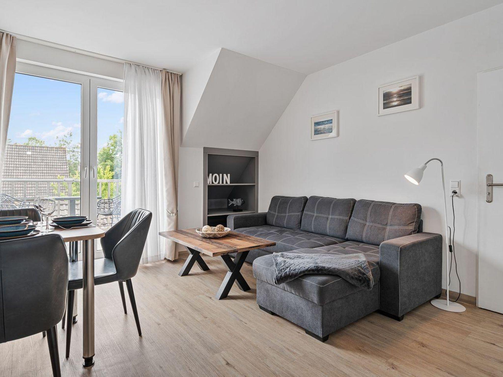 Die nordisch inspirierte Einrichtung mit modernen Möbeln, kombiniert mit einer ruhigen Lage im Ortsteil Ording, macht diese Wohnung zum perfekten Rückzugsort.
