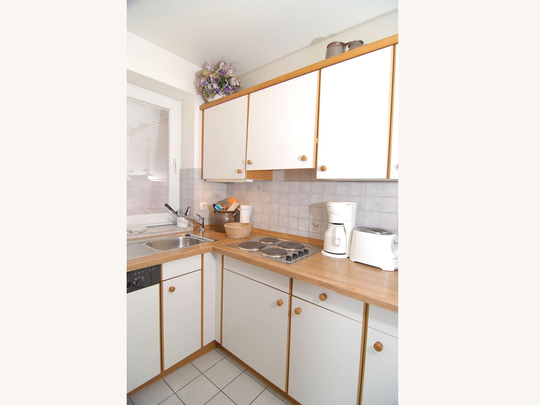 Küche: Vollausgestattete Küche mit 4-Plattenherd und 45 cm Geschirrspüler.