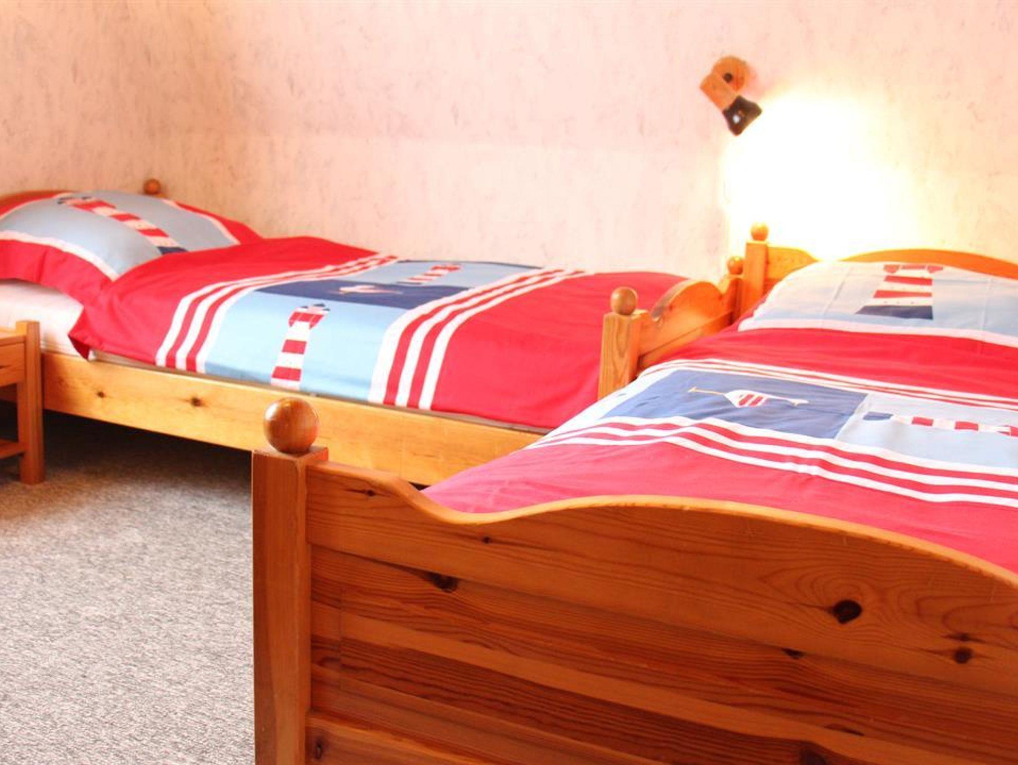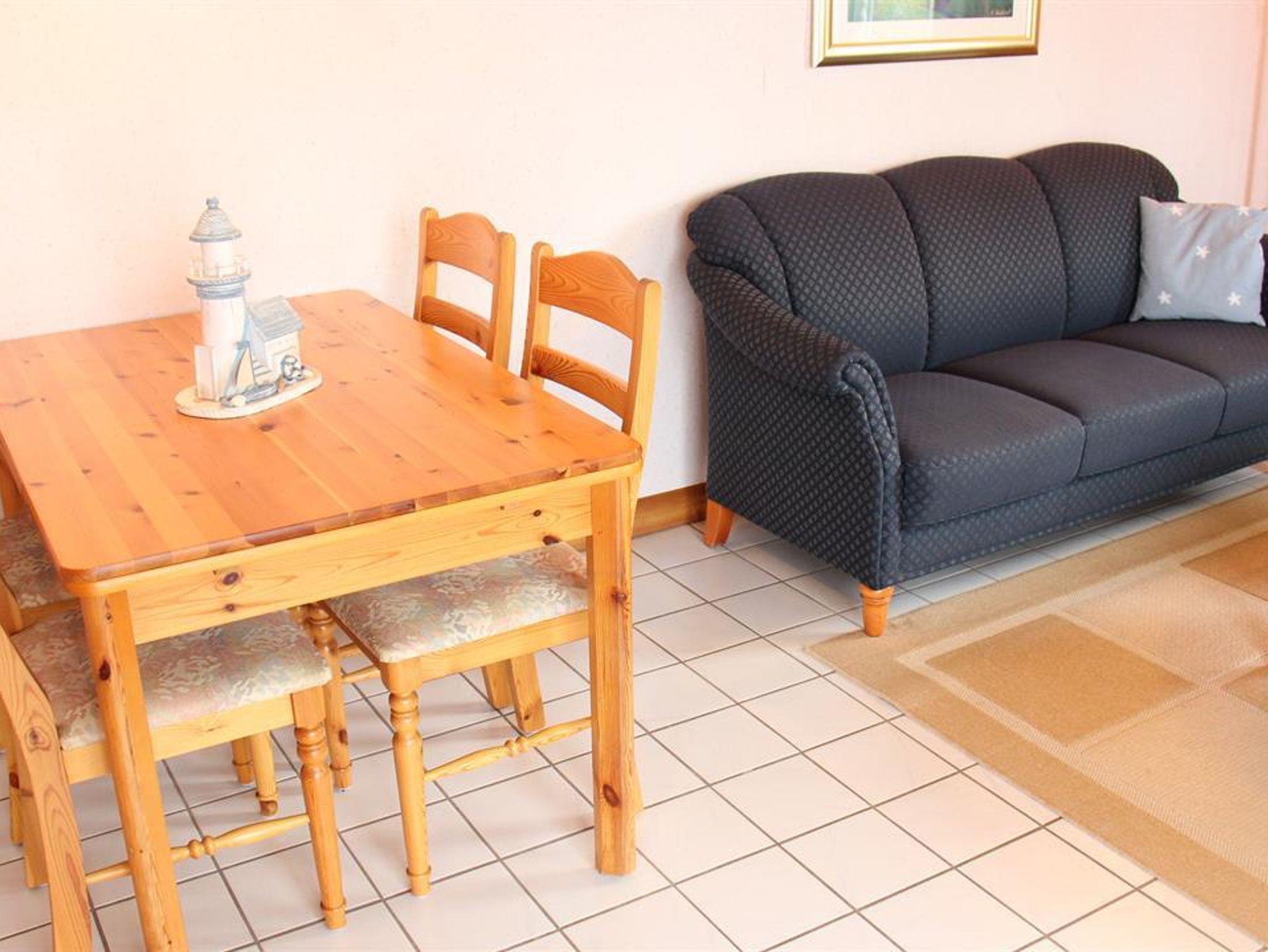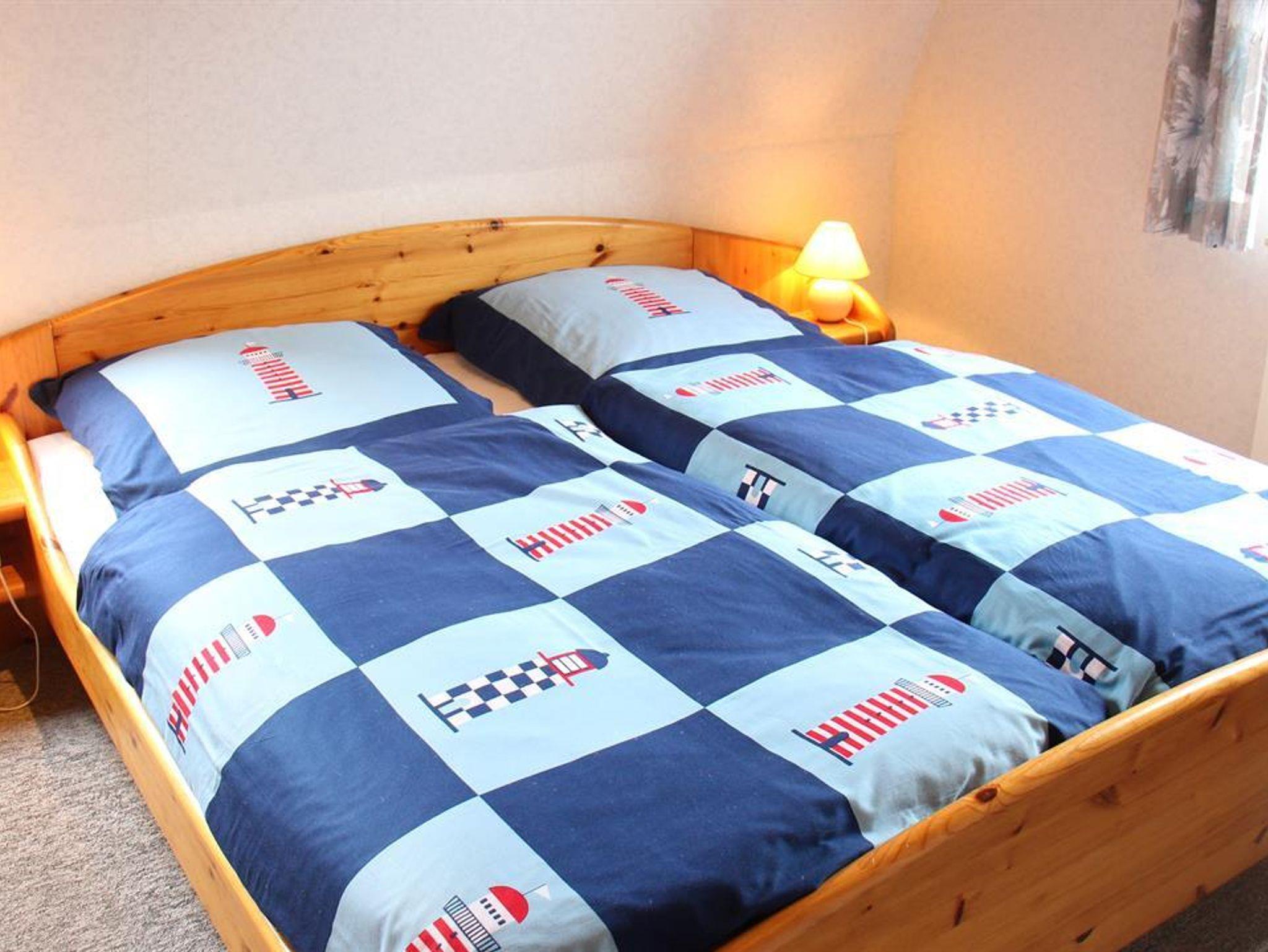 EG: 1 Wohn-Eßraum mit Küchenzeile (u.a. mit Mikrowelle), Kabel-Farb-TV, Radio (mit CD-Player). Abstellraum. Gäste-WC (alle Räume ebenerdig). Tresor. OG: 1 Schlafraum mit Doppelbett. 1 Schlafraum mit 2 Einzelbetten. Dusche/WC. Die Wohnung ist liebevoll im nordischen Stil eingerichtet. Deckenholzvertäfelung. Bettwäsche und Handtücher müssen mitgebracht werden. Kinderhochstuhl u. Kinderbett auf Wunsch nach Verfügbarkeit. Neue Designbelagböden in den Schlafzimmern.