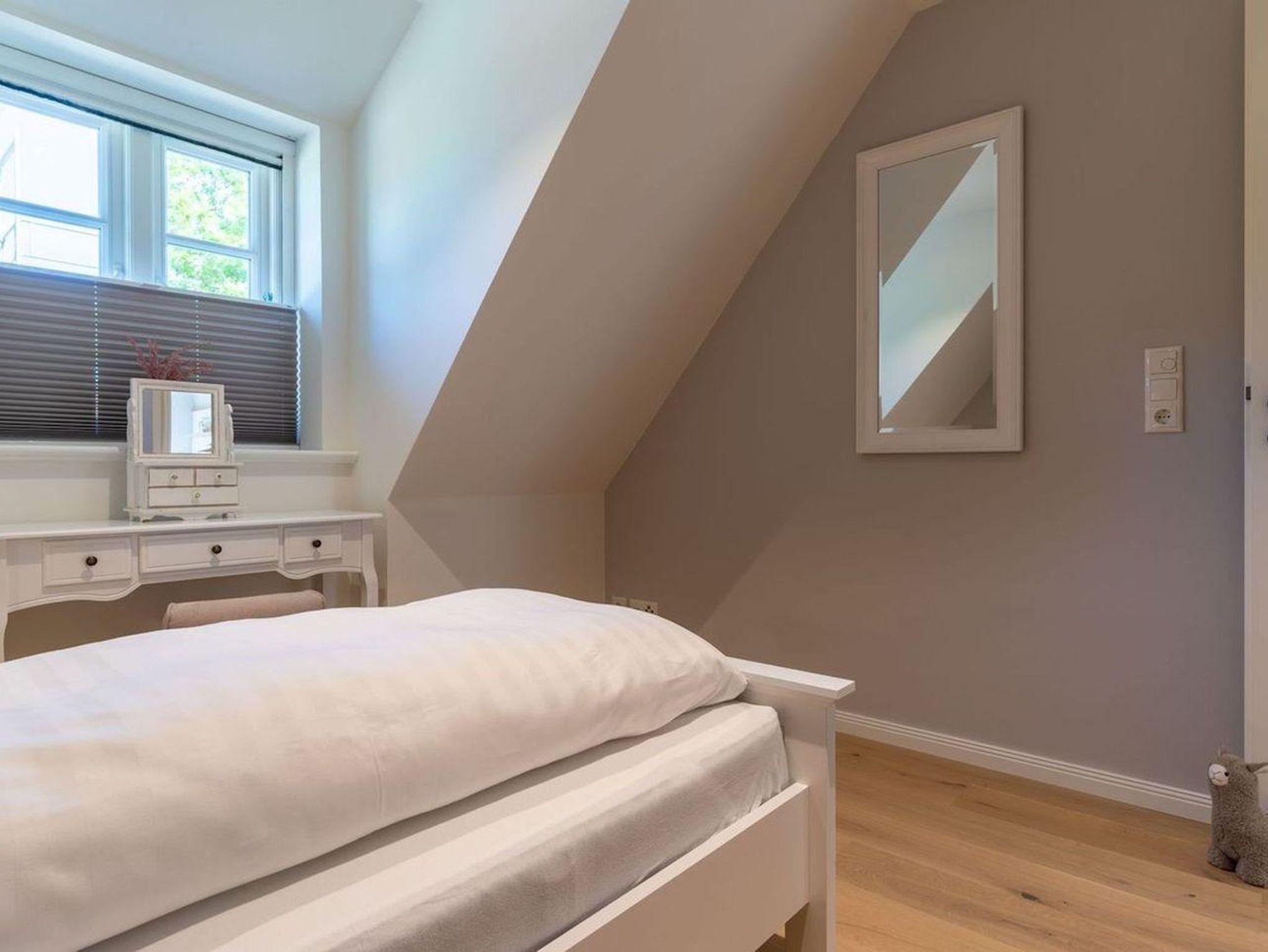 Im Erdgeschoss erwartet Sie ein lichtdurchflutetes Wohnzimmer mit einem Kamin, einer offenen Küche sowie einem integrierten Esszimmer mit hochwertigen Möbeln. Die Küche verfügt über hochwertige Elektrogeräte und genügend Platz zum gemeinsamen Kochen. An den Wohnbereich schließen sich ein Flur, ein Schlafzimmer mit einem Doppelbett und TV sowie ein Bad und ein Abstellraum. Über eine Holztreppe gelangt man in das Obergeschoss. Ein weiteres Schlafzimmer mit einem Doppelbett ist ebenfalls mit TV ausgestattet. Kleiderschränke gewähren Ihnen hinreichend Ablageflächen. Darüber hinaus befinden sich im Obergeschoss zwei weitere Schlafzimmer mit je einem Einzelbett. Ein zweites vollausgestattetes Badezimmer im OG, mit einer Dusche und zwei einzelnen Waschbecken runden das hochwertige Hauskonzept ab und lassen keine Wünsche offen. Im Obergeschoss befindet sich ebenso ein Gäste-WC. Das volle Wohlfühlprogramm erwartet Sie im Dachgeschoss, hier gelangen Sie direkt in die Sauna. Das Grundstück mit Stellplatz, Rasenfläche und einer sonnigen Terrasse ist mit heimischen Pflanzen angelegt. Auf Wunsch kann die dazugehörige Elektro-Ladestation hinzu gebucht werden. Dieses Feriendomizil ist ab dem Buchungsjahr 2024 auch mit einem Haustier buchbar! Dieses wunderschöne Haus lässt keine Wünsche offen und bringt Sie sofort in Urlaubsstimmung!