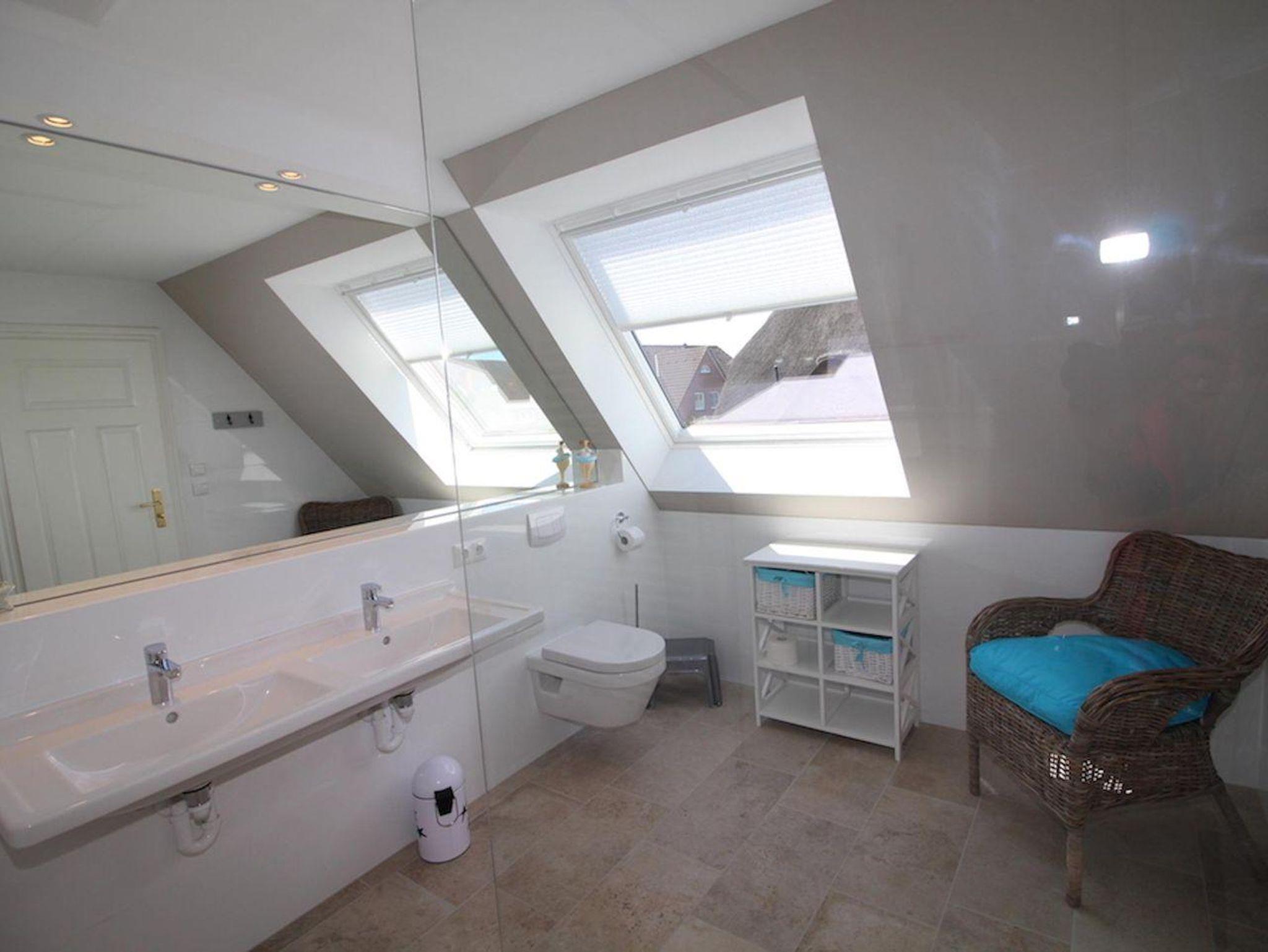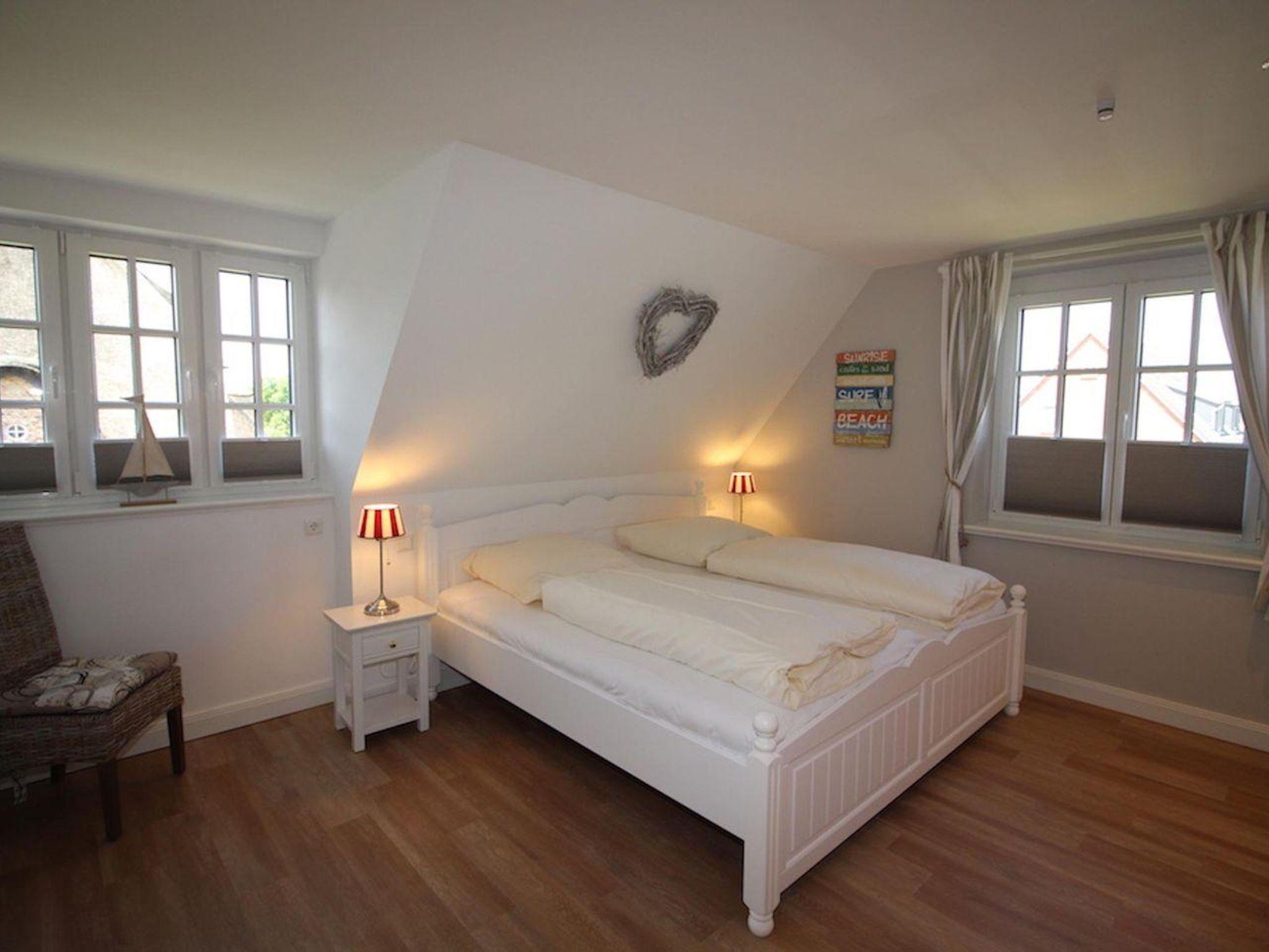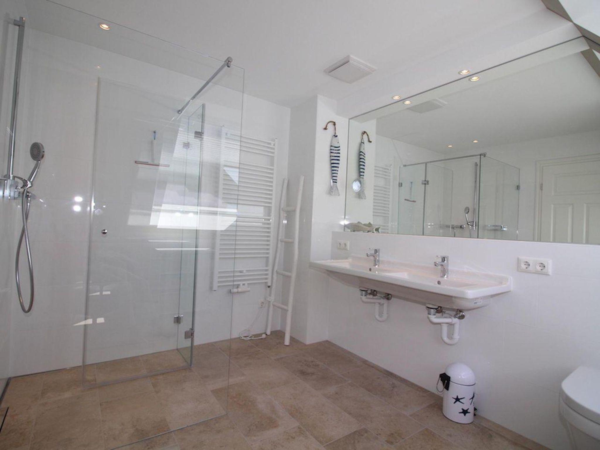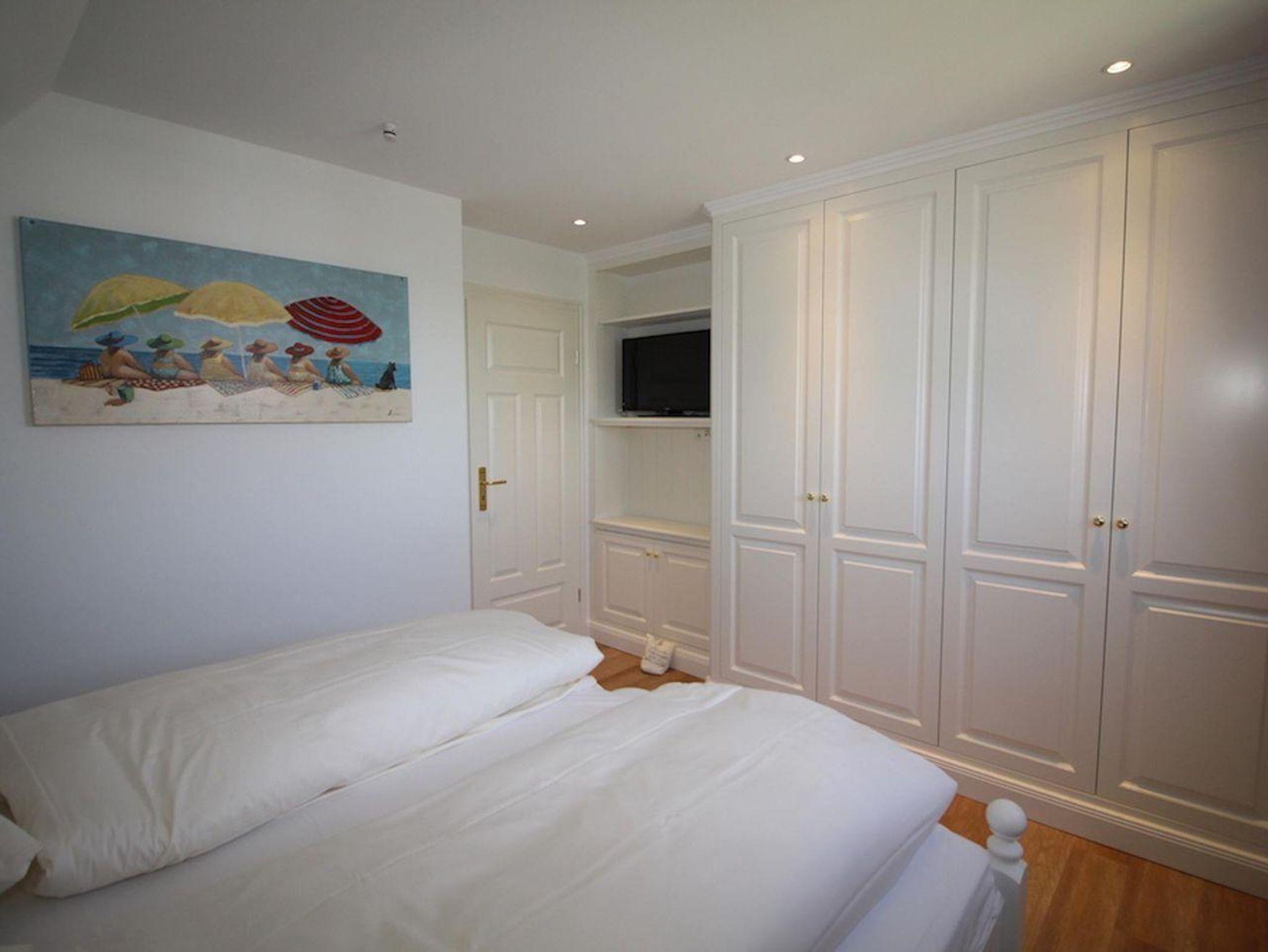 Im Erdgeschoss befindet sich der lichtdurchflutete Wohnraum mit TV, Kamin, einer offenen Küche sowie einem stilvollen Essbereich mit gemütlicher Eckbank. Die Wohnräume sind mit exklusiven Möbeln ausgestattet. Die Küche verfügt über hochwertige Elektrogeräte. An den Wohnbereich schließen sich ein Flur mit eingebauter Garderobe, ein Abstellraum und ein Gästebad an. Ebenso ist Ebenerdig ein Doppelschlafzimmer mit Einbauschränken. Das gesamte Erdgeschoss ist mit geschmackvollen Fußbodenfliesen versehen, die über eine Fußbodenheizung beheizt werden können. Über eine Holztreppe gelangt man in das mit Parkett ausgelegte Obergeschoss. Dieses verfügt ebenfalls über eine Fußbodenheizung. Die beiden Schlafzimmer, jeweils mit einem Doppelbett, sind ebenfalls mit TV ausgestattet. Einbauschränke gewähren Ihnen hinreichend Ablageflächen. Darüber hinaus befinden sich im Obergeschoss zwei weitere, geräumige Bäder mit Dusche. Für zusätzliche Entspannung sorgt eine Sauna mit Sternenhimmel. Vom Obergeschoss führt die Holztreppe hinauf in das Dachgeschoss. Ein drittes Schlafzimmer mit Doppelbett und großen Fenstern mit Blick bis zum Wasser erfüllt jeden Urlaubstraum.