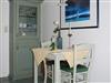 Die Wohnung Everschop ist stilvoll und individuell eingerichtet mit Ledercouch, bequemem Ledersessel und Glastisch sowie integrierter Küchenzeile mit Kühlschrank und 2-Plattenherd, die mit einer grün lasierten Holzfront verkleidet ist. Auf einem Bord oberhalb steht eine zusätzliche Mikrowelle. Kaffeemaschine, Toaster und Mixer sind vorhanden. Farblich passend hierzu sind eine Vitrine aus Massivholz für das Porzellan und die Gläser und die Essgruppe. Ein großes Sprossenfenster nach Osten lässt die Morgensonne ein. Vom Wohnraum führt eine Tür zum Schlafraum mit Doppelbett (1,8 x 2,0 m) und von dort in das Duschbad (mit Föhn).