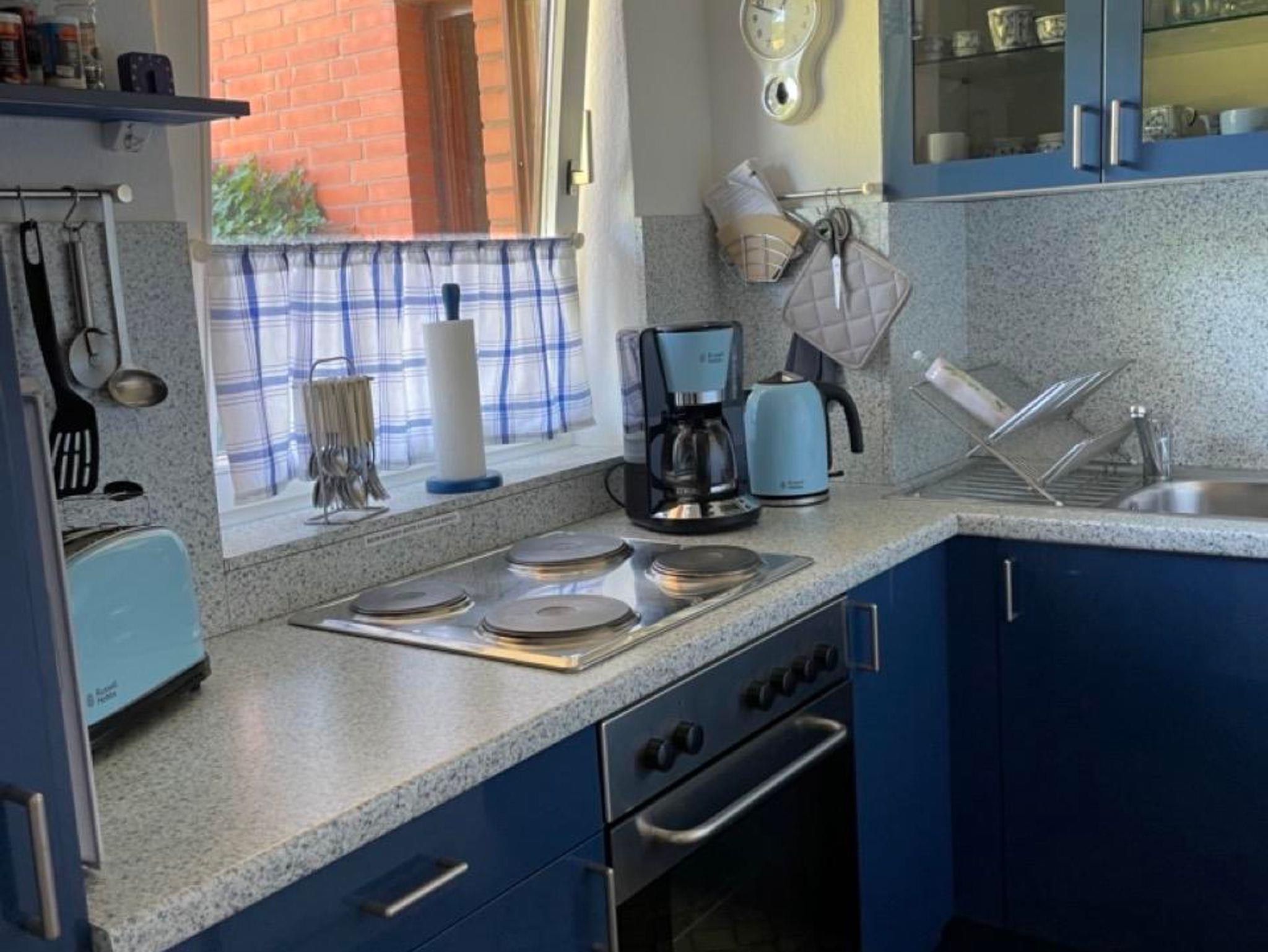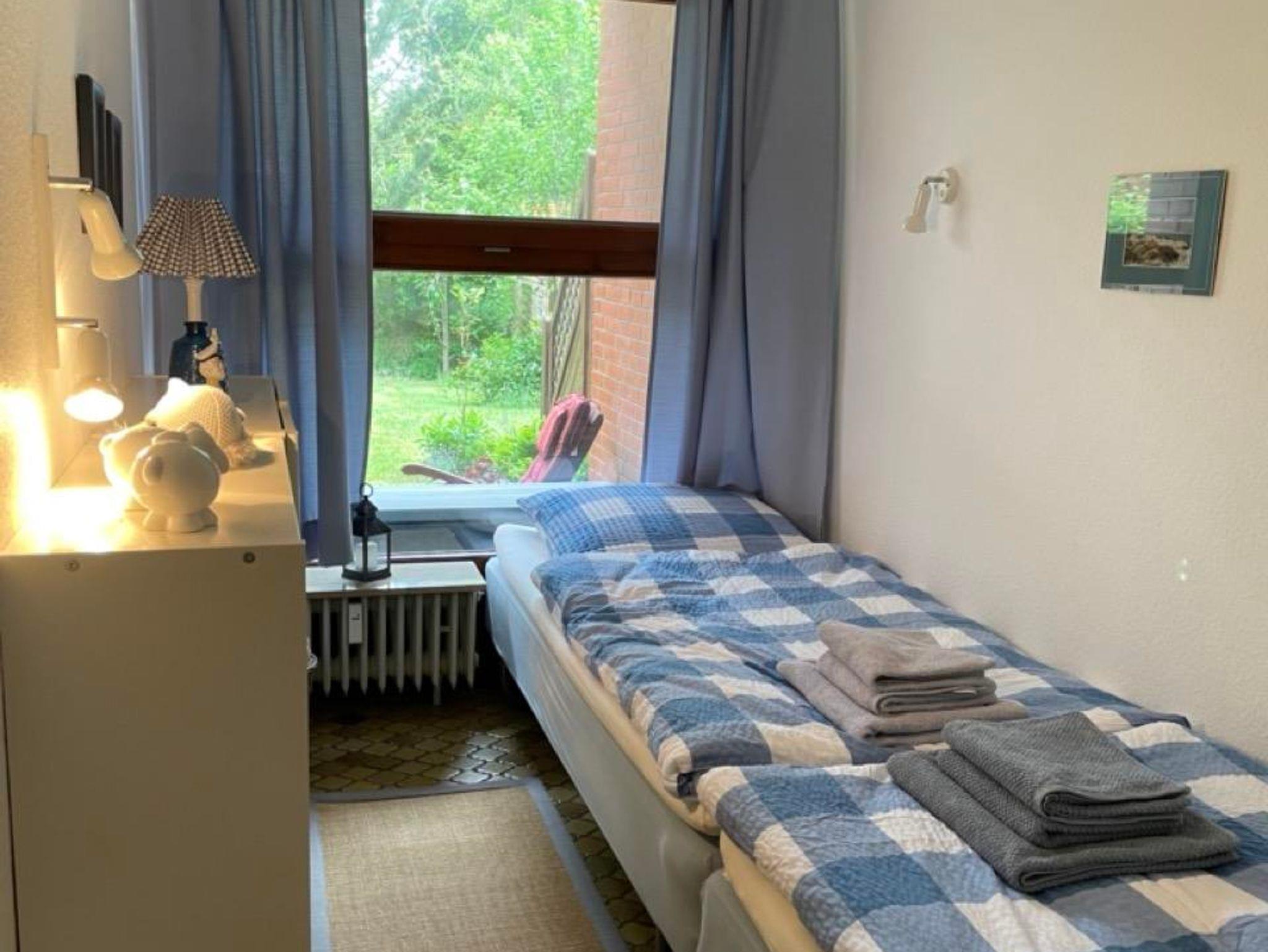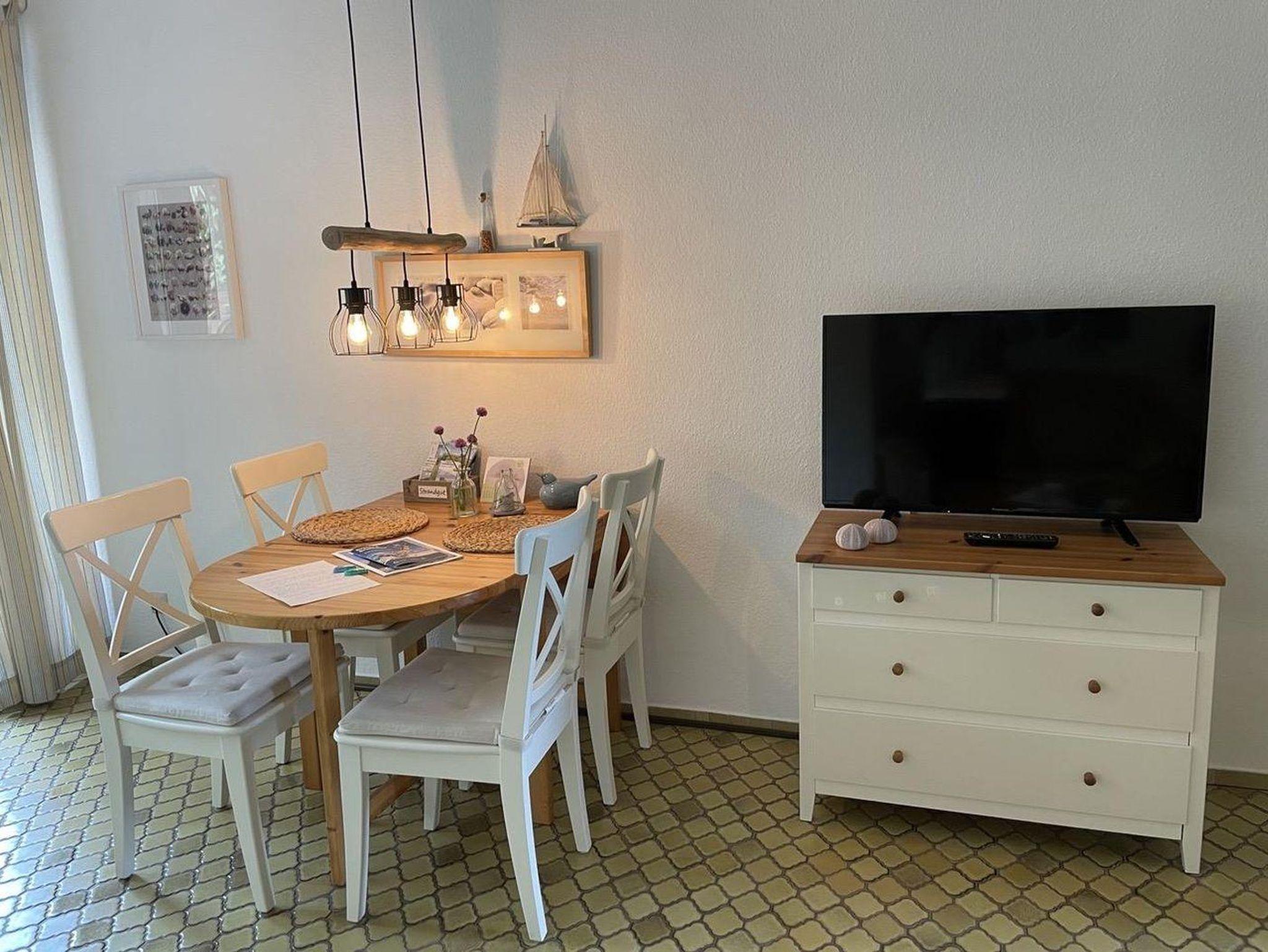 1 Wohnschlafraum mit Doppelschrankbett, SAT-Farb-TV und Radio. 1 Schlafraum mit 2 Einzelbetten. Kleine, komplett eingerichtete Küche. Dusche/WC. Bettwäsche und Handtücher müssen mitgebracht werden oder können gegen Gebühr angemietet werden (Bettwäsche 6 Euro/Garnitur, 1 Satz Handtücher 5 Euro/Pers.).
