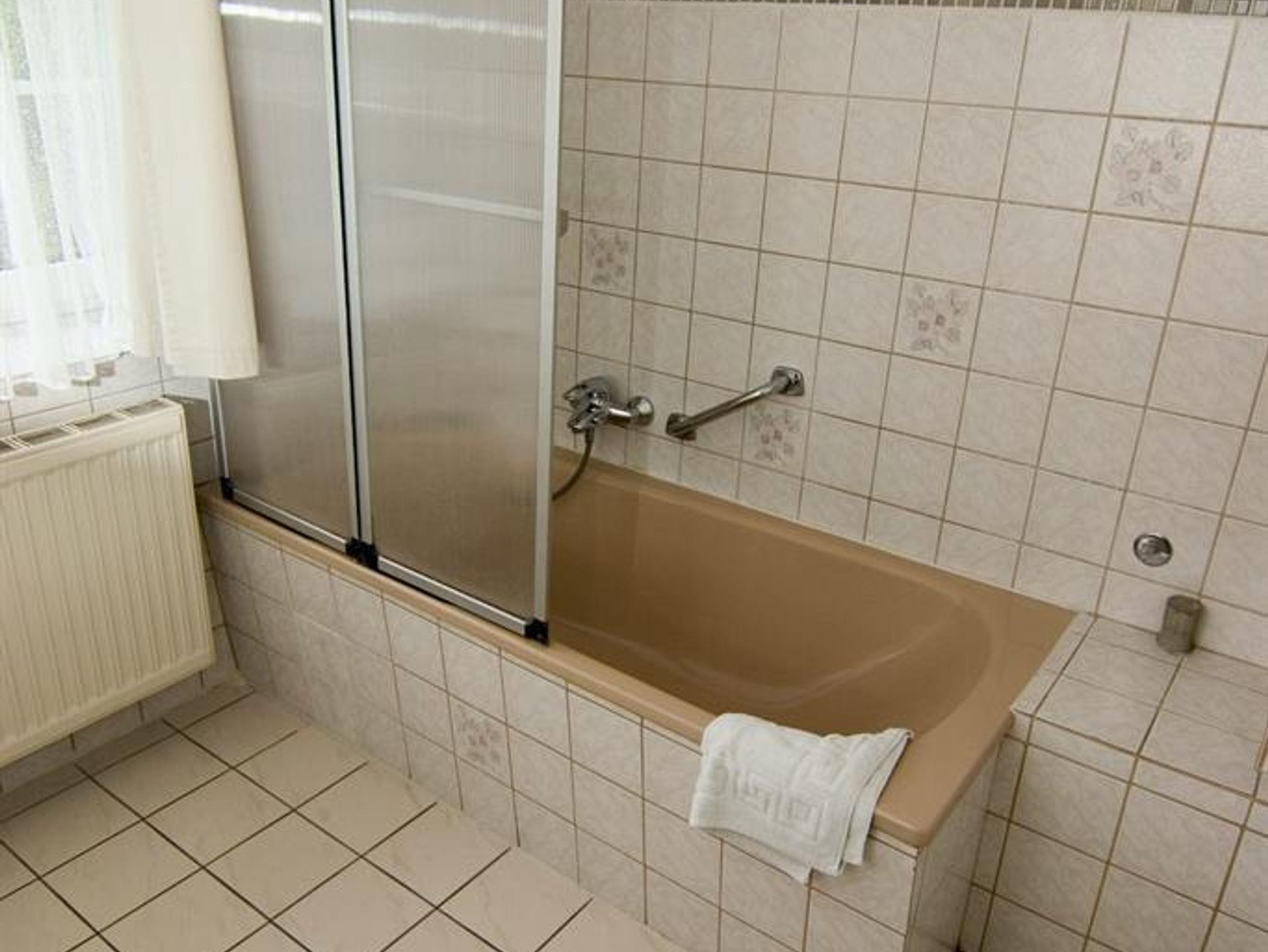 Ein Kinderhochstuhl steht im Waschraum für Sie bereit.