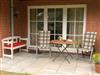 Terrasse: Südlage, Bank, Tisch, 2 Stühle, 2 Liegen, Sonnenschirm, Wäscheständer