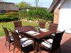 Im Essbereich befindet ich eine komplett ausgestattete Einbauküchenzeile, die durch eine schöne Essgruppe ergänzt wird.