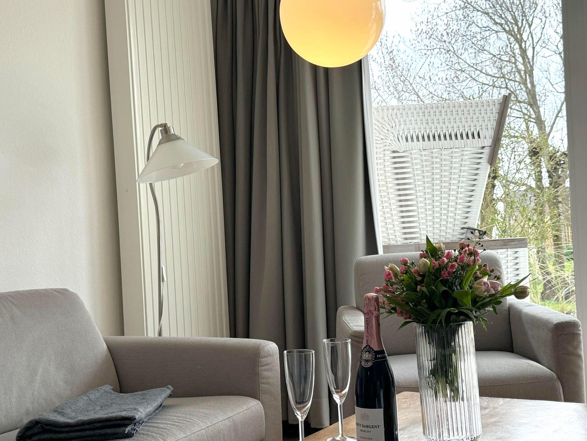 Helle, freundliche und strandnahe Ferienwohnung in St. Peter-Ording im Erdgeschoss mit sehr großer Südterrasse für 2-3 Personen, ruhig und strandnah