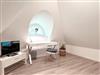 Eine massive Holztreppe führt in das Obergeschoss, wo Ihnen zwei Schlafzimmer mit jeweils einem Doppelbett (1,80 x 2,00) ungestörte Entspannung bieten. Ein großzügiges Vollbad ergänzt diese Etage. Im Dachgeschoss erwartet Sie ein Arbeitszimmer mit einem Schreibtisch, einem bequemen Stuhl, einem hochwertigen TV und einem ausziehbaren Schlafsessel (0,90 x 2,00).