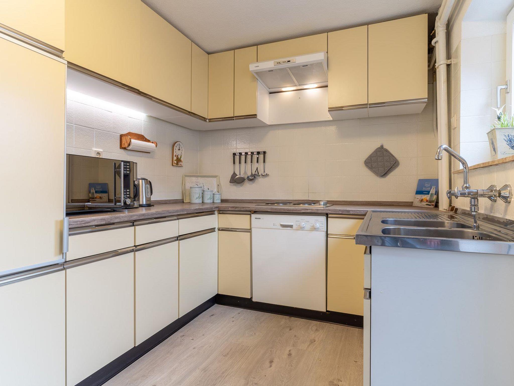 Die Küche ist mit einem 4-Platten-Herd, Mikrowelle mit Grillfunktion, Geschirrspülmaschine, Wasserkocher, Kaffeemaschine, Toaster, Eierkocher, Kühlschrank mit Gefrierfach und allen nötigen Utensilien zum Herrichten leckerer Gerichte ausgestattet.