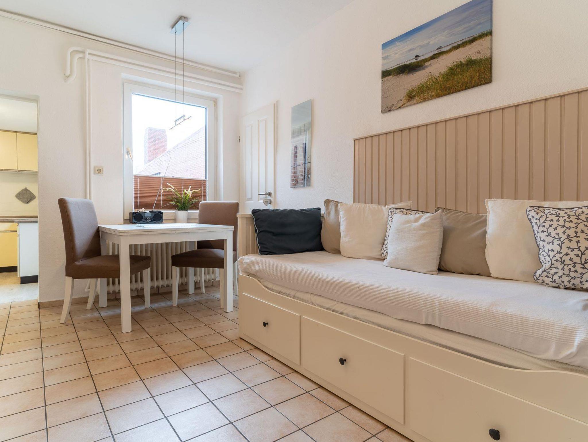 Die Wohnung Springfloot 1 ( ca. 49 qm) liegt im Erdgeschoss des Hauses, ist für bis zu 3 Personen (Nichtraucher) geeignet und wurde 2014 saniert.